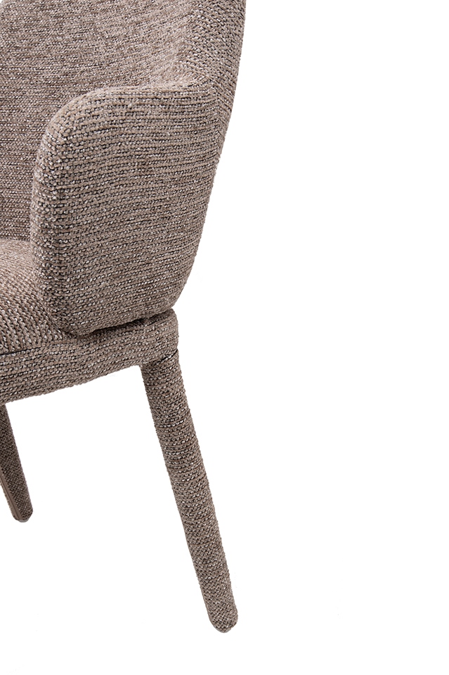 Tapicerka wykonana w 100% z poliestru wyróżnia się miękką, strukturalną powierzchnią, która nadaje przytulny i stylowy charakter.