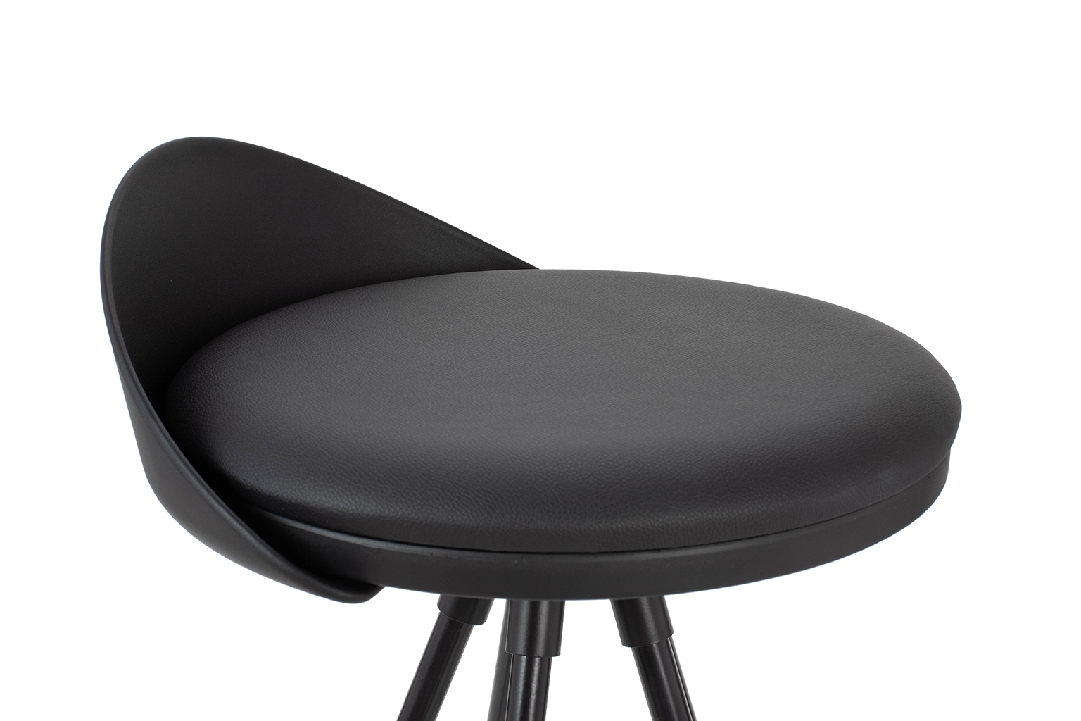 Niskie oparcie i siedzisko z poduszką z ekoskóry idealnie komponują się z długimi, zgrabnymi nóżkami