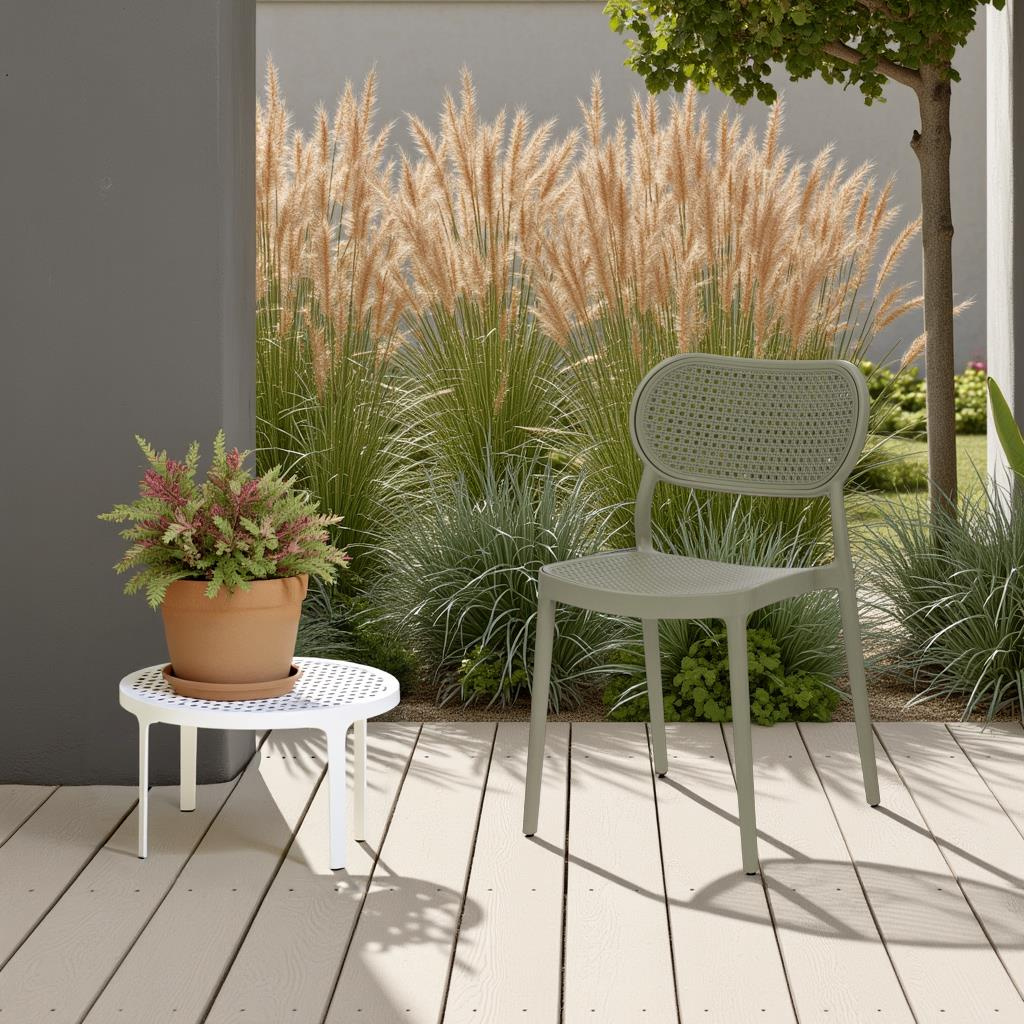 Krzesło Bilto to połączenie wytrzymałego na promienie UV polipropylenu oraz nienagannej minimalistycznej formy. Krzesło o wygodnym, lekko zaoblonym oparciu sprawdzi się w ogrodzie lub na tarasie. Oparcie i siedzisko krzesła wykonane zostały z tworzywa, które swoim kształtem przypomina plecionkę wiedeńską. Idealnie odwzorowany kształt plecionki przypomina naturalny rattan. Krzesło jest wykonane z łatwego w czyszczeniu polipropylenu. Max. obciążenie 120kg. Krzesło nie wymaga montażu. Krzesło sztapluje się. Maksymalne sztosy jakie można sztaplowac do 6szt. Krzesło nadaje się do użytku na zewnątrz.