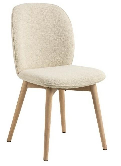 Krzesło Cindy to sposób na elegancką jadlanie lub salon. Zaokrąglone oparcie zapewni wsparcie podczas wystawnej kolacji lub śniadania. Krzesło tapicerowane jest miękką tkaniną typu bouclé o kręconej strukturze, która nadaje mu nowoczesnego charakteru. Aby nadać mu lekki, skandynawski wygląd, wsparto go na drewnianych nogach olejowanych oraz bielonych. Nogi krzesła zostały wykonane z bardzo trwałego drewna kauczukowego. Wygodne krzesło do jadalni w nowoczesnym, skandynawskim stylu . Tapicerowane beżową tkaniną typu bouclé . Ozdobione lamówką. Nogi z kauczuku olejowane i bielone . Certyfikat FSC. Zaprojektowany przez Christinę Aagaard. Wysokość oparcia: 43cm Szerokość siedziska: 49cm Głębokość siedziska: 44,5cm Max. obciążenie 110kg Wymaga montażu. Waga krzesła: 7,6kg Wymiary kartonu: 68x38x55cm Max. 2szt w kartonie