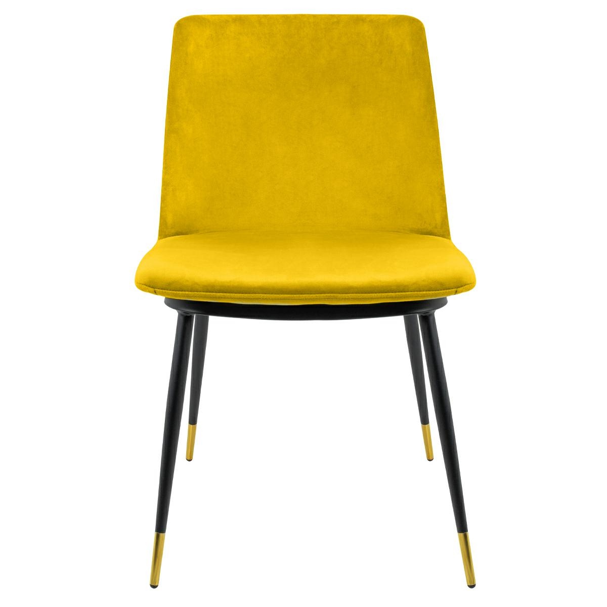 Ciekawym elementem dekoracyjnym są złote zakończenia nóg. Krzesło doskonale odnajdzie się w jadalni, gabinecie oraz pokoju dziennym.