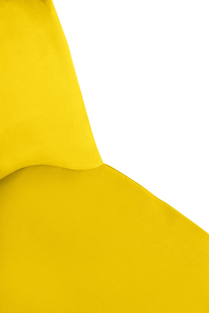 Siedzisko i oparcie tapicerowane miękkim i przyjemnym w dotyku welurem. Konstrukcja z metalu w kolorze czarnym z satynowym wykończeniem.