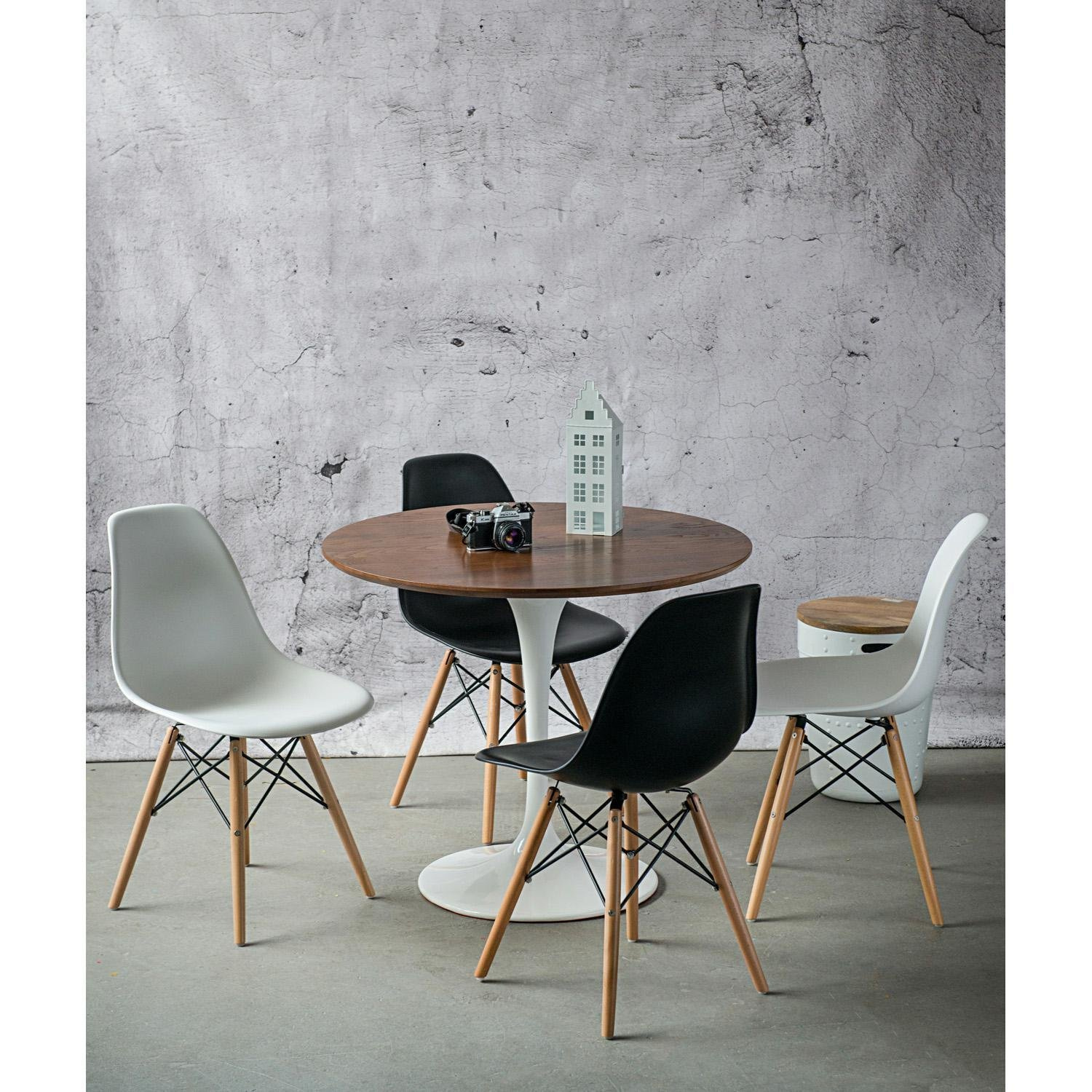 Prototyp krzesła do jadalni z plastikowym siedziskiem i drewnianą podstawą powstał w 1950 roku, mimo to jego nowoczesna linia i uniwersalność sprawia, że współcześnie modele inspirowane DSW są jednymi z najczęściej wybieranych krzeseł. Świetnie wyglądają w naturalnych wnętrzach skandynawskich, aranżacjach w stylu modern oraz boho.