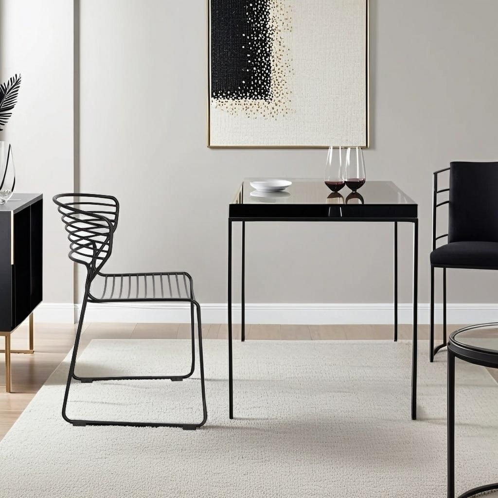 Metalowe, druciane krzesło z wyprofilowanym, wygodnym oparciem to jest mebel poszukiwany przede wszystkim przez osoby lubiące minimalizm i klasyczny, elegancki wystrój. Krzesło Hilly wykonane w całości zostało z metalu, malowanego proszkowo na czarno. Krzesło na płozach posiada dodatkowe, stopki z plastiku, które nie tylko dodają stabilizacji meblowi, ale również chronią nogi krzesła jak i podłogę przed zarysowaniami. Metalowe krzesło idealnie komponuje się z kolorowymi poduszkami na siedzisku. Metalowe, malowane proszkowo. Maksymalne dopuszczalne obciążenie krzesła:110 kg Krzesło jest odporne na warunki atmosferyczne, dlatego możemy używać je na zewnątrz. Krzesło nie wymaga montażu. Krzesło sztapluje się. Maksymalne stosy jakie można ułyżyć to 6 szt. Max 4 szt w kartonie. Wymiary kartonu: 61x59x89 cm