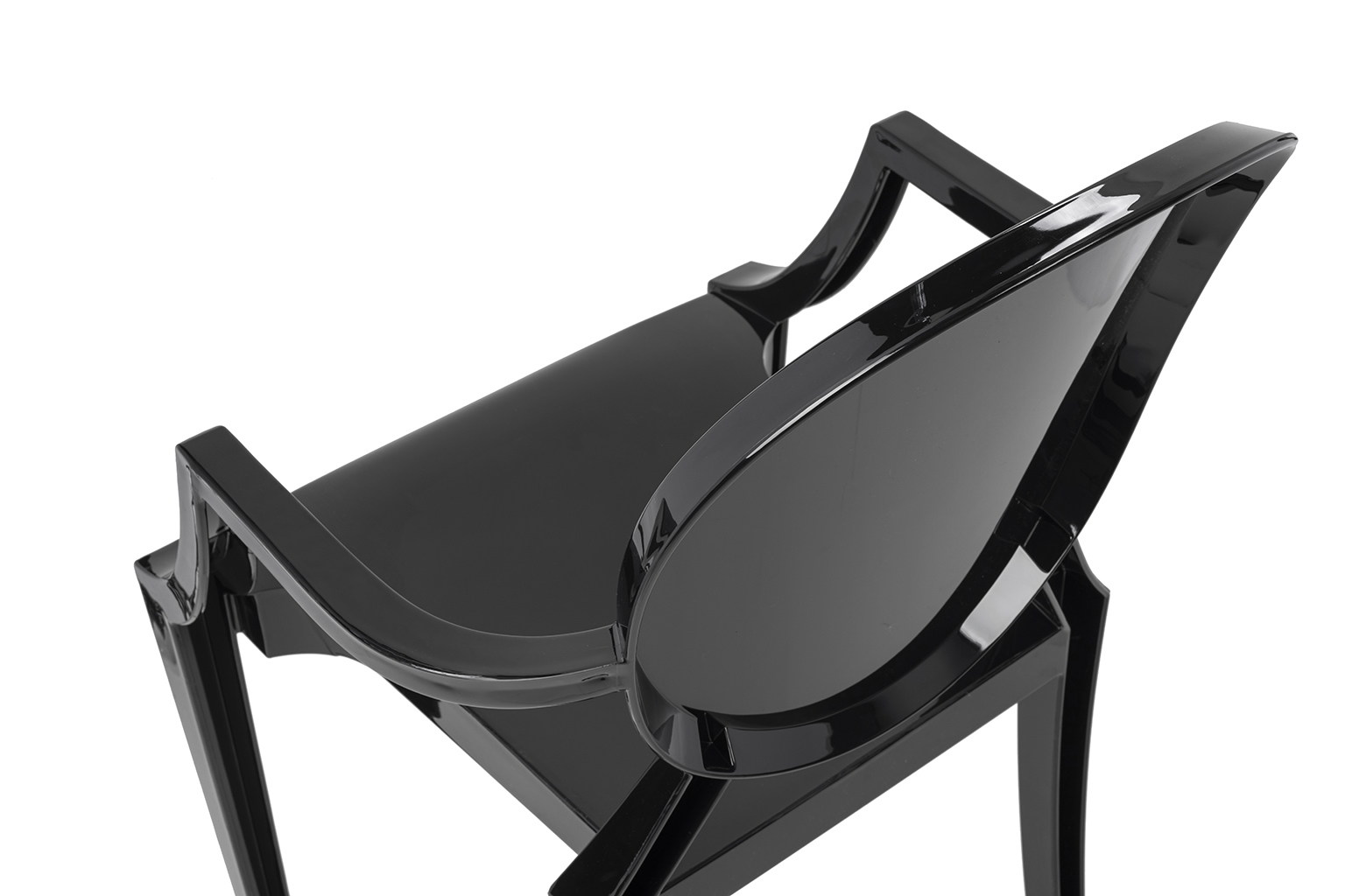 Krzesło Louis w całości zostało wykonane z czarnego poliwęglanu