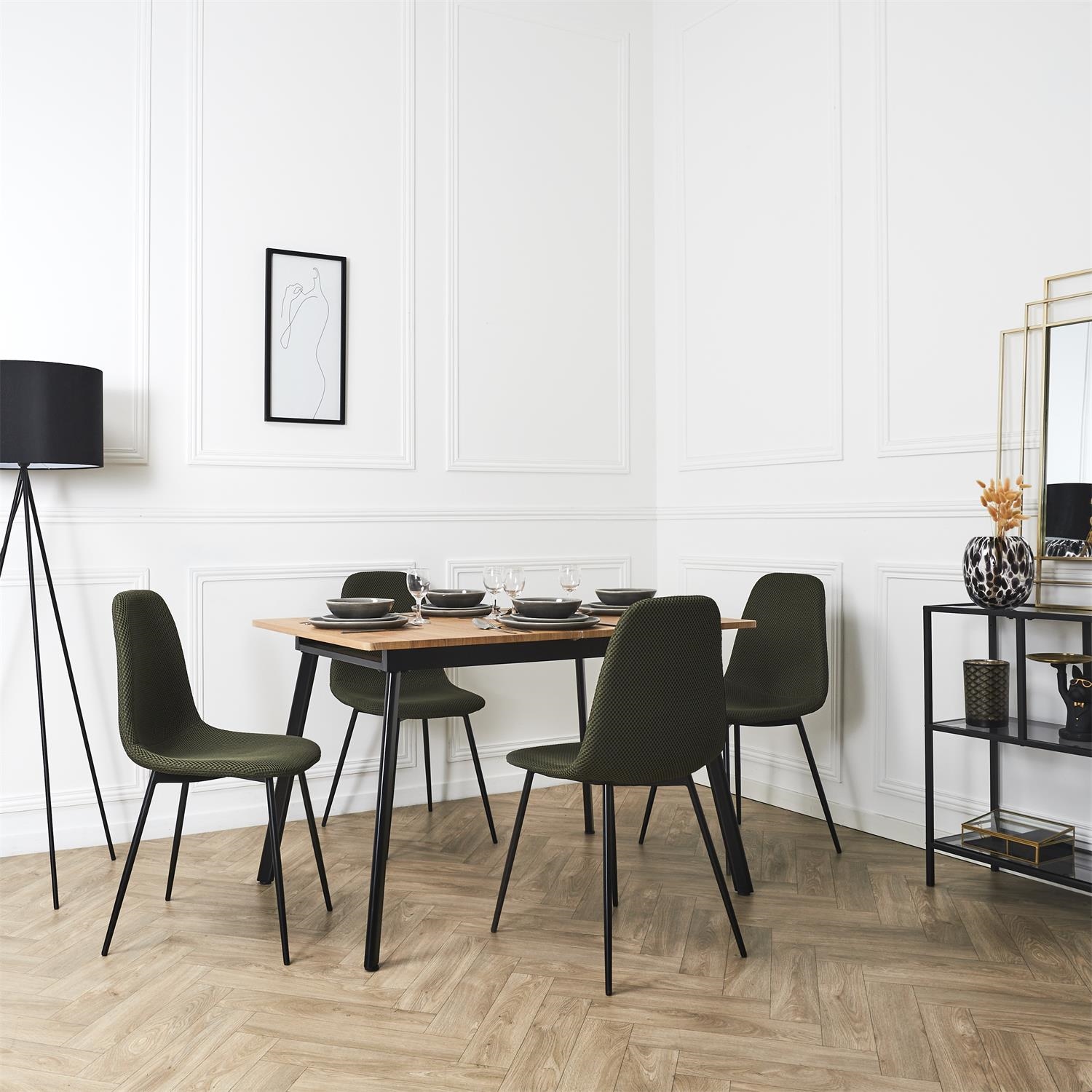 Krzesło Pori to połączenie wygodnego, wyprofilowanego siedziska oraz wytrzymałej metalowej podstawy. Tkanina dystansowana na krześle sprawia wrażenie trójwymiarowej. Tkanina charakteryzuje się bardzo dobrą przepuszczalnością powietrza oraz minimalnym pochłanianiem wody i wilgoci, dzięki czemu krzesł sprawdzi się również w jadalni lub kuchni. Skład tkaniny 100% poliester. Gramatura tkaniny 210g/m2. Oparcie oraz siedzisko krzesła tworzą spójną całośc i gwarantują wygodne oparcie podczas posiłku. Krzesło Pori wymaga łatwego montażu. Max. obciążenie krzesła 110kg. Krzesło nie sztapluje się. Wymiary kartonu: 61x47x66cm. Waga 22kg. Max 4 szt w kartonie