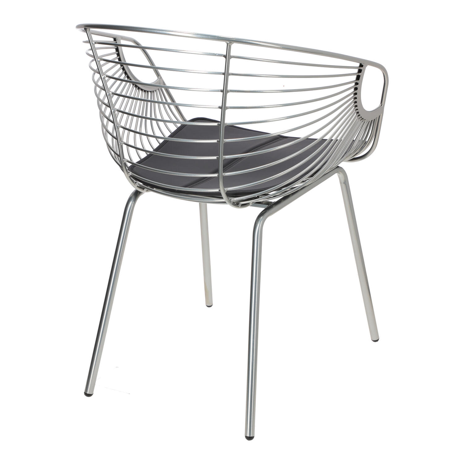 Metalowe krzesło Sligo to nowoczesne krzesło do wnętrza w stylu loft lub industrialnego. Krzesło o siedzisku w kształcie kosza będzie idealnym meblem do jadalni lub kuchni. Krzesło z podłokietnikami jest nie tylko wygodne ale również charakteryzuje sie ciekawym kształtem. Dzięki użyciu malowanego proszkowo metalu, krzesło odporne jest na uszkodzenia mechaniczne. Siedzisko krzesła zostało wyposażone w poduszkę z eko skóry.