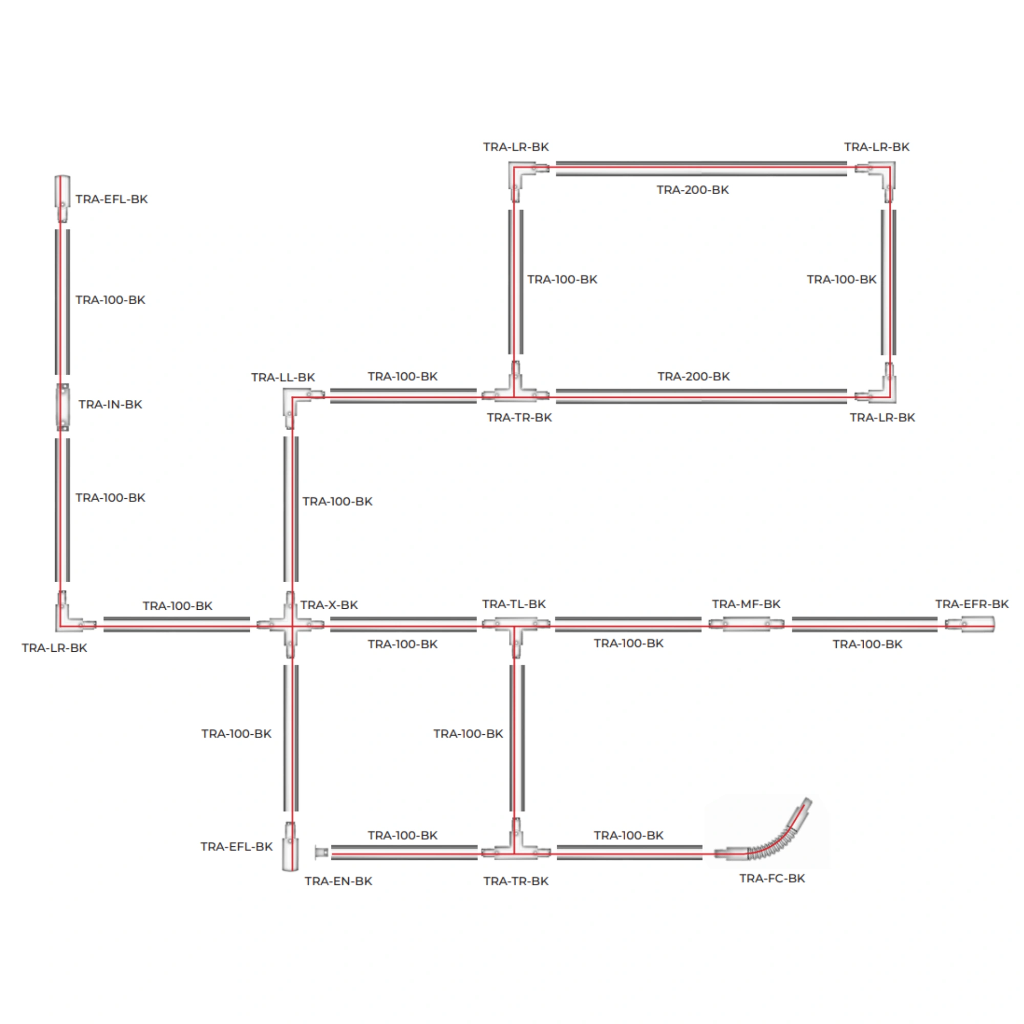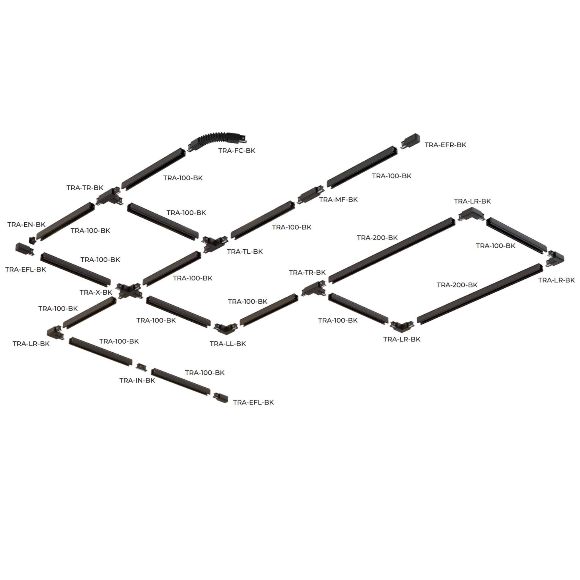 Łącznik L lewy do szyn 3F czarny TRA-LL-BK