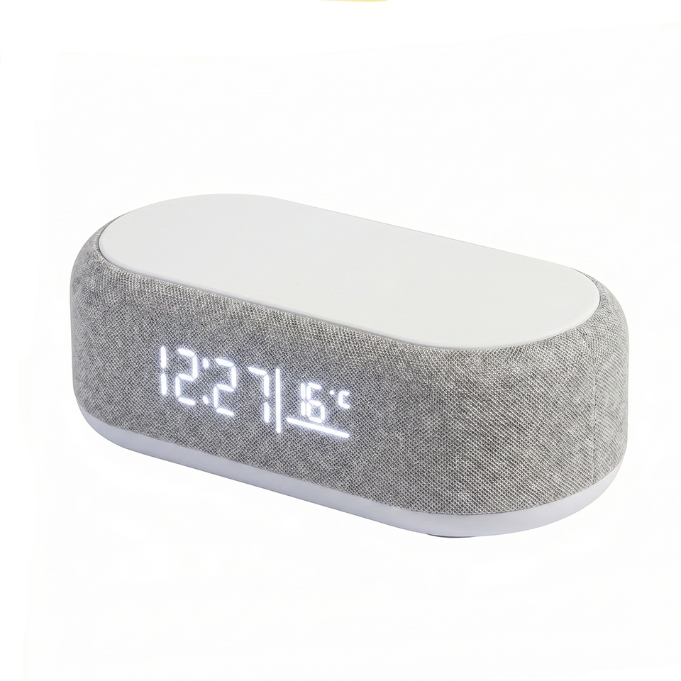 Ładowarka indukcyjna z zegarem LED SHP BAXTER szara.