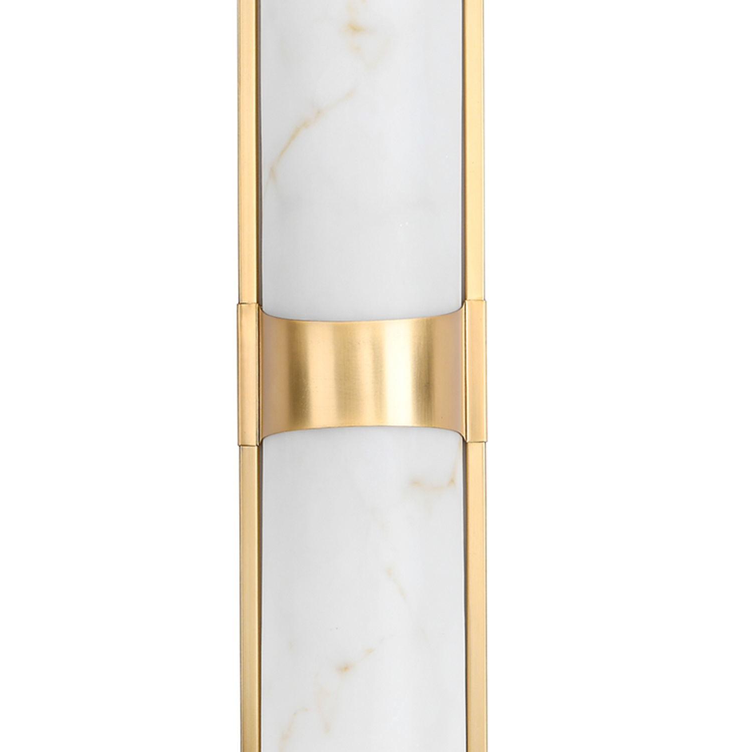 Środkowa część, która rozprasza światło, jest wykonana z luksusowego przenikającego światło naturalnego marmuru opasanego mosiężną opaską z metalu.
