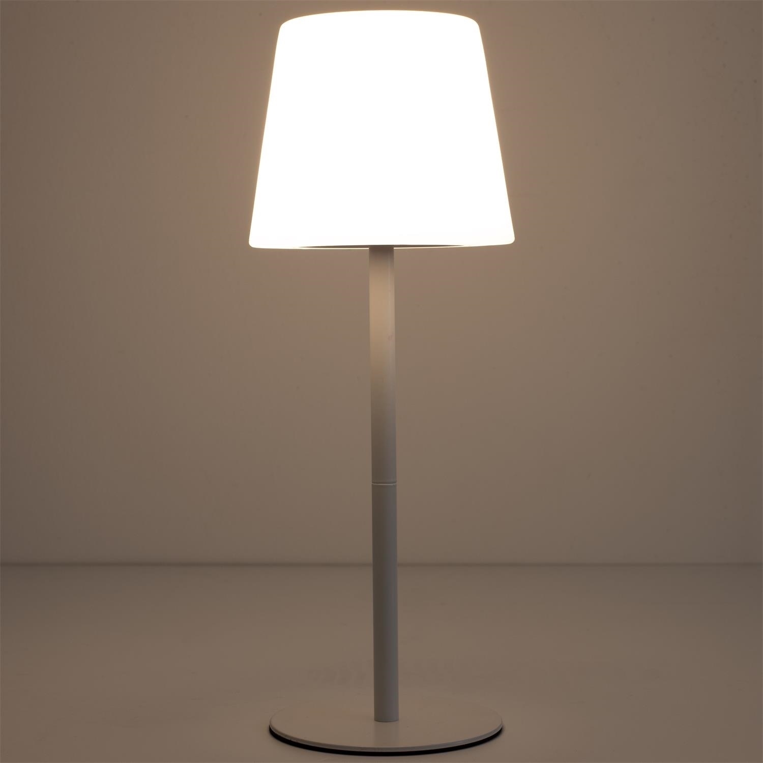 Lampka led, ładowana za pomoca kabla USB to idealne oświetlenie tarasu, balkonu lub salonu w miejscu gdzie nie mamy dostepu do gniazdka elektrycznego. Lampka posiada 3stopniową regulację natężenia światła. Wyposażona w wewnętrzny akumulator, możemy ją naładować i postawić wdowolnym miejscu. Lampka w zestawie z kablem. Lampka nadaje się do użytku na zewnątrz IP:44