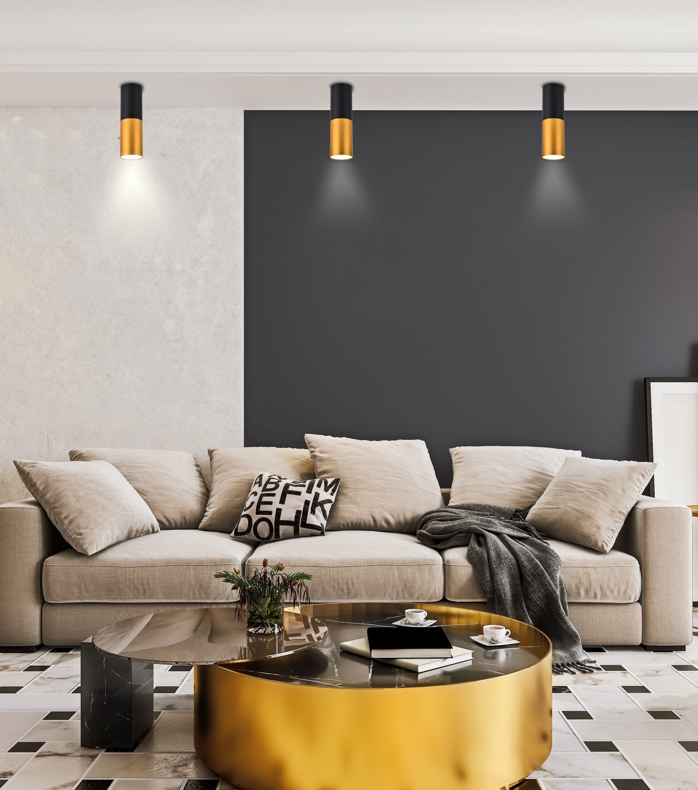 Nadaj swojej przestrzeni nowoczesnego blasku z lampą sufitową Tuba. Jej czarno-złote wykończenie łączy elegancję z subtelnym luksusem, tworząc wyjątkowy design. Wyposażona w gniazdo GU10 o mocy 15W, Tuba sufitowa nie tylko dostarcza intensywne światło, ale również stanowi stylowy element dekoracyjny.