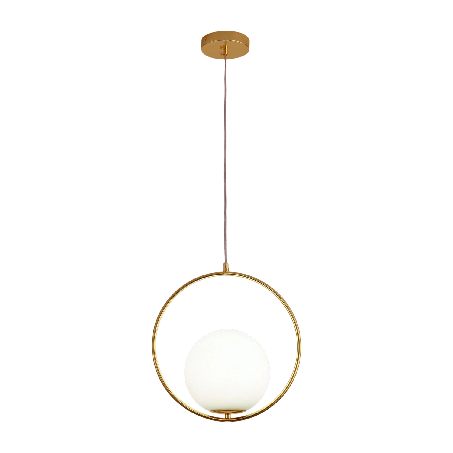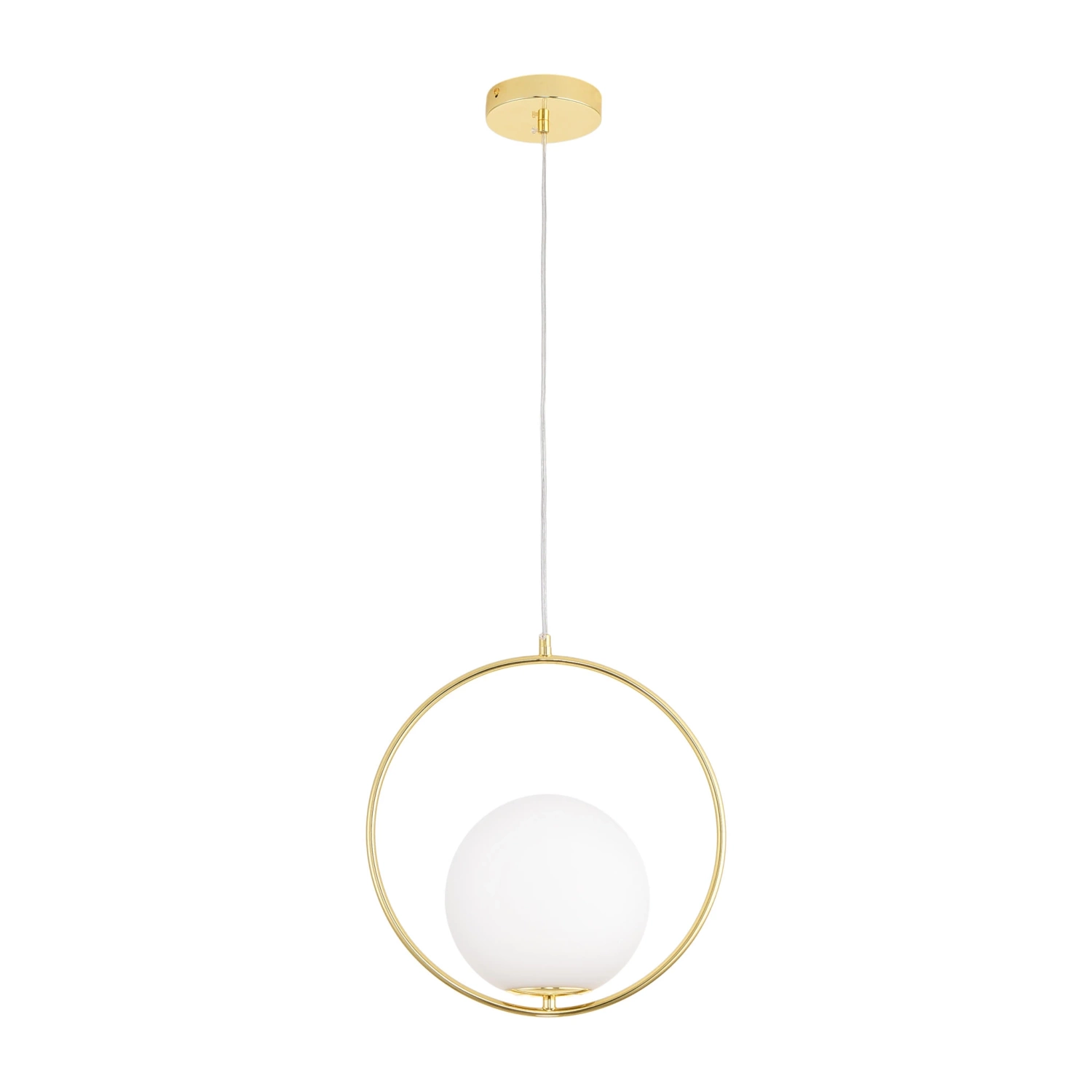 Nowoczesna lampa wisząca COSTA Round w złotej oprawie z białym kloszem. Stylowe oświetlenie do salonu, jadalni lub sypialni. Elegancja i minimalizm w jednym.