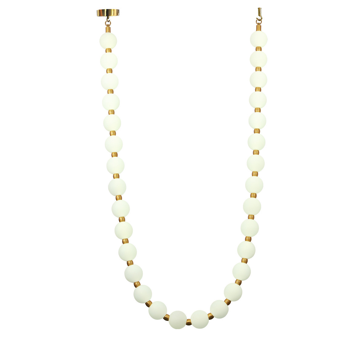 Lampa Dorado Rope z kolekcji Dorado wyróżnia się niekonwencjonalnym kształtem liny, którą tworzą połączone ze sobą okrągłe klosze wykonane z białego akrylu. Klosze te delikatnie rozpraszają światło, zapewniając przyjemne i równomierne oświetlenie pomieszczenia. Złote metalowe łączenia między kloszami oraz eleganckie podsufitki dodają całości szyku i nowoczesnego charakteru. Lampa ma długość 3 metrów i jest montowana na dwóch podsufitkach. Dorado Rope wyposażona jest w zaawansowane oświetlenie LED CCT, które pozwala na ustawienie preferowanej barwy światła – od ciepłej, przez neutralną, aż po zimną – jeszcze przed montażem, co pozwala na idealne dopasowanie do różnych wnętrz i ich funkcji. Dzięki swojemu unikalnemu designowi i nowoczesnym funkcjom, lampa Dorado Rope doskonale sprawdzi się zarówno w przestrzeniach mieszkalnych, jak i komercyjnych, wnosząc do nich element elegancji i funkcjonalności.
