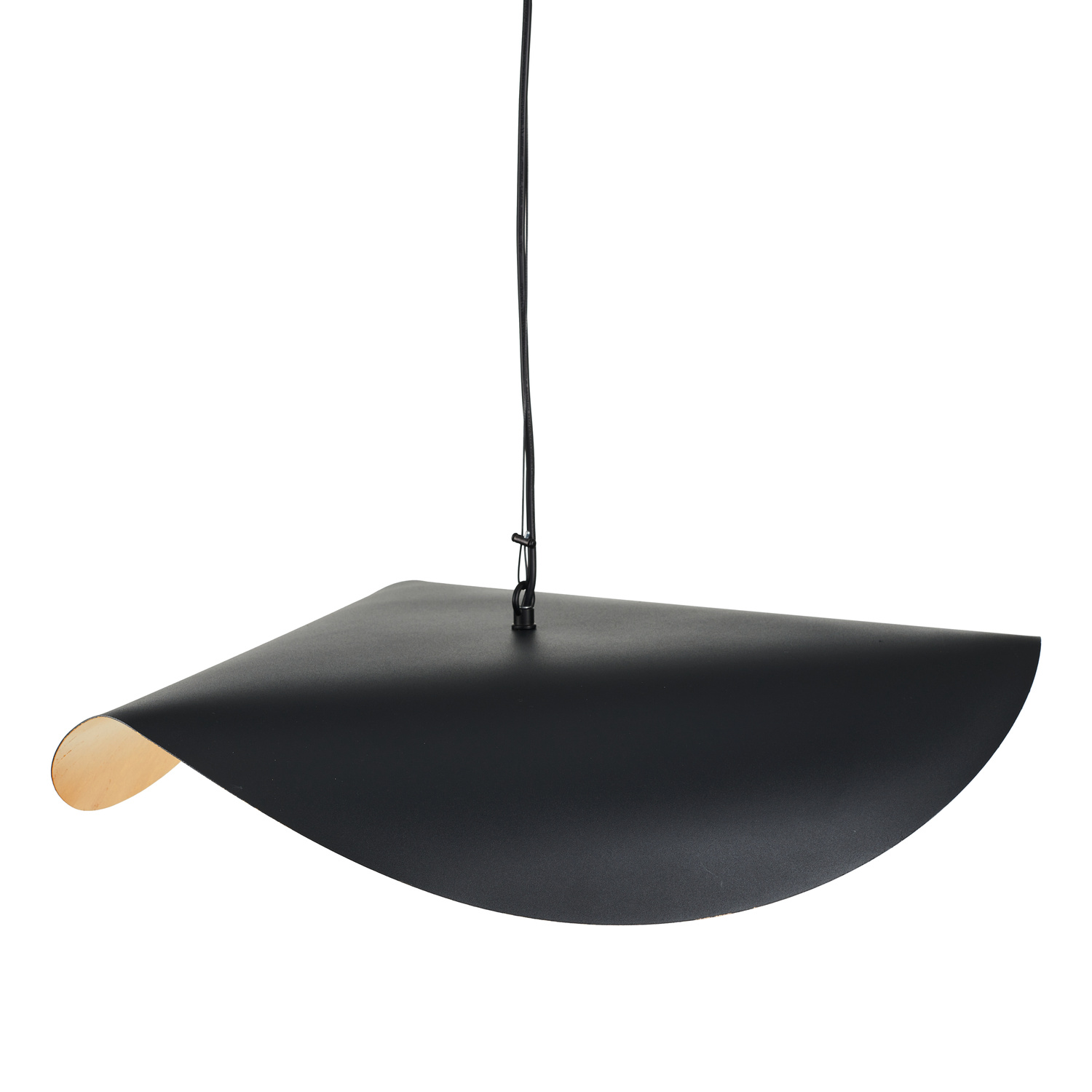 Całość zawieszona jest na cienkim,eleganckim czarnym przewodzie zamontowanym do okrągłej, czarnej podsufitki.