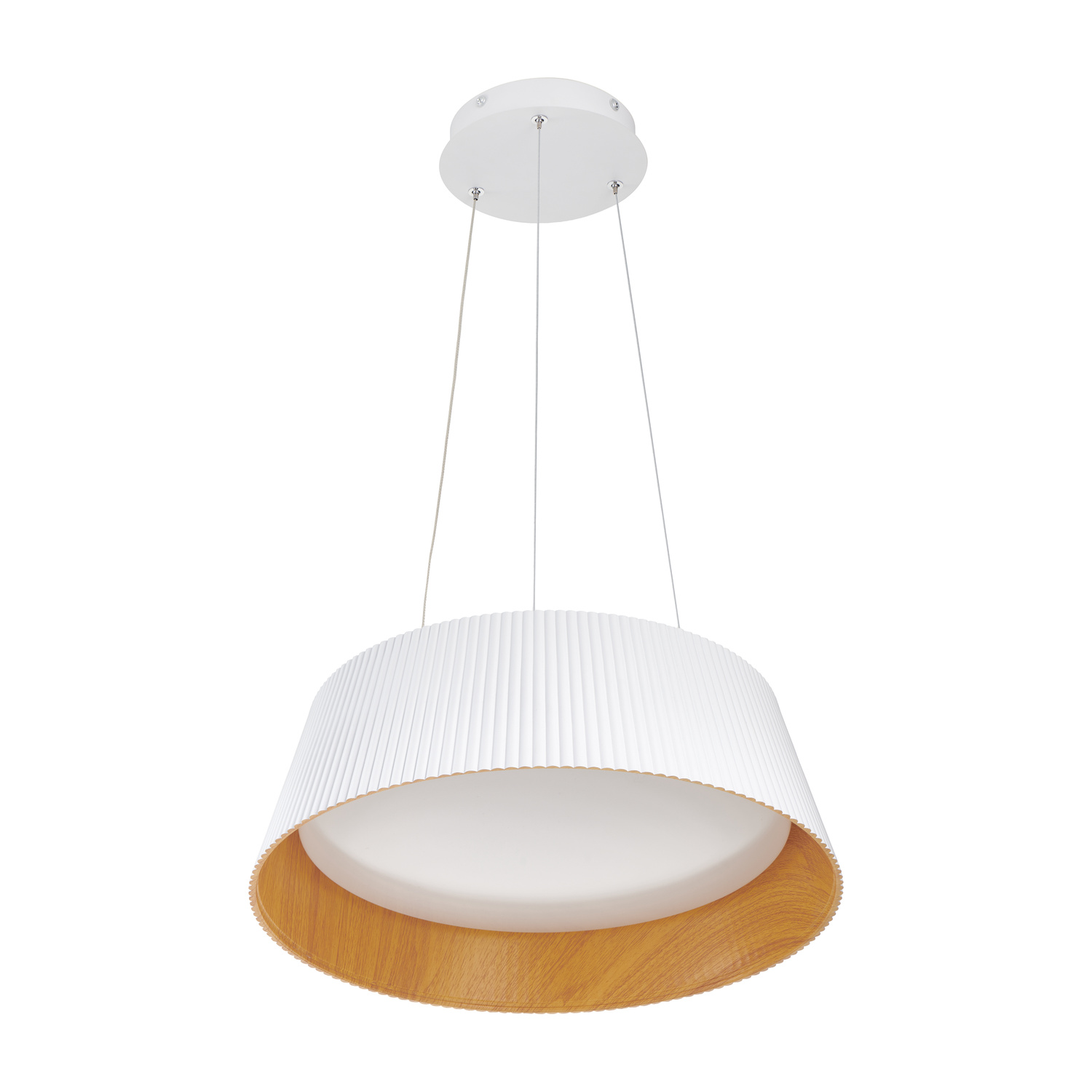 Lampa Wisząca LED FRILL 45cm Biała Ryflowana Drewnopodobne Wnętrze Regulowana Wysokość