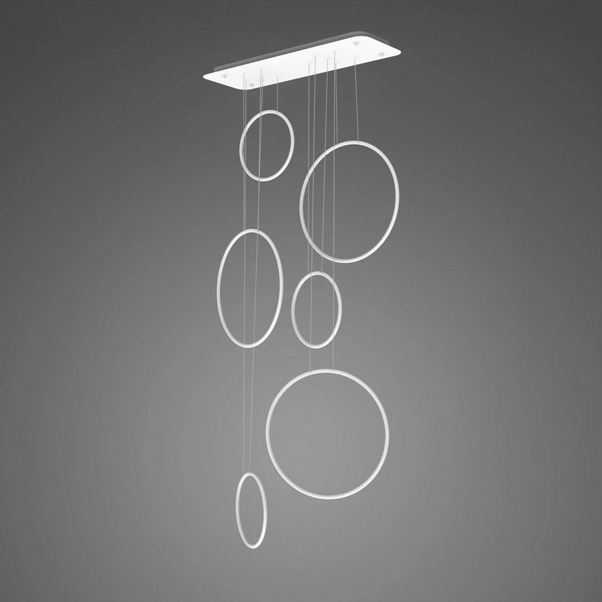 Lampa wisząca LED „Okręgi No. 8” – Twój unikalny design oświetlenia! Kreatywna swoboda dzięki 6 regulowanym okręgom. Magiczna atmosfera w Twoim wnętrzu. Elegancja i minimalizm w bieli. Idealna nad antresolę!