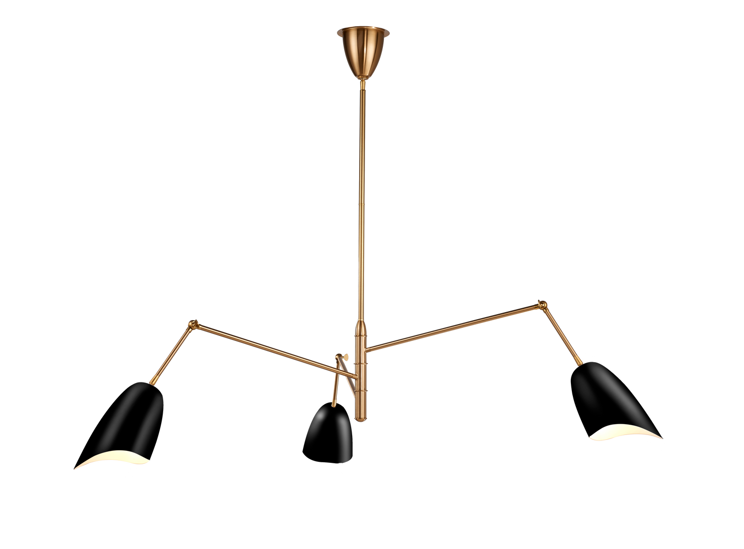 Jej regulowane ramiona pozwalają na dostosowanie kierunku światła do potrzeb pomieszczenia. Kontrast między czernią a złotem dodaje jej elegancji.