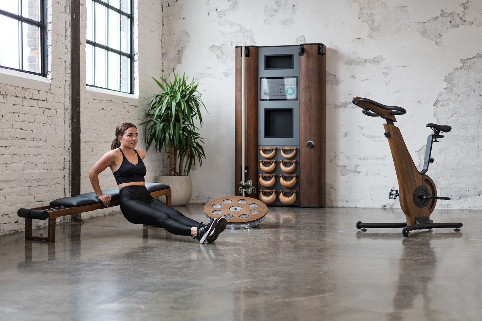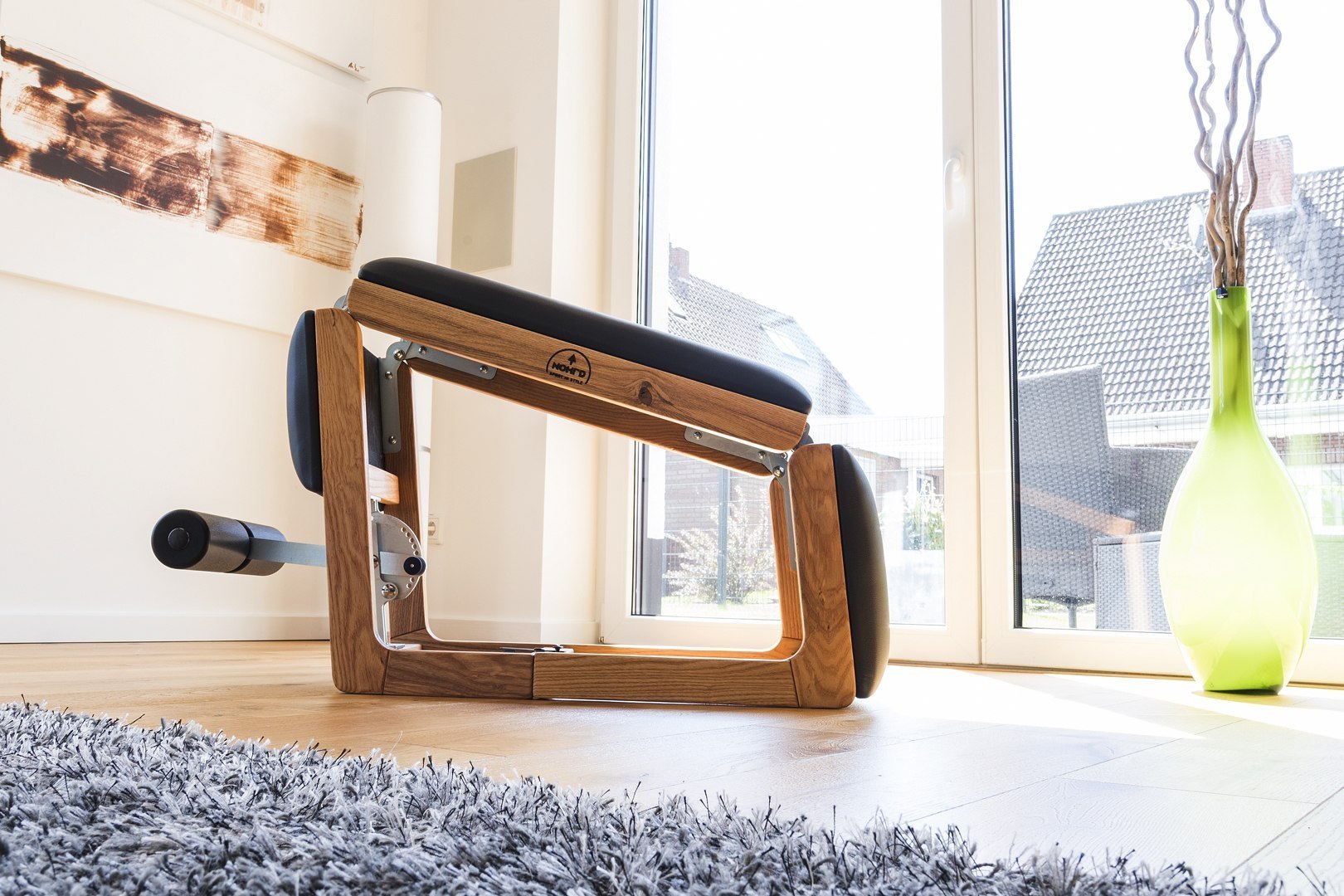 Rama ławki wykonana została z drewna jesionowego, w pozycji podstawowej TriaTrainer wymaga mniej niż jednego metra kwadratowego powierzchni. Elastyczny podnóżek można regulować w dziesięciu pozycjach.