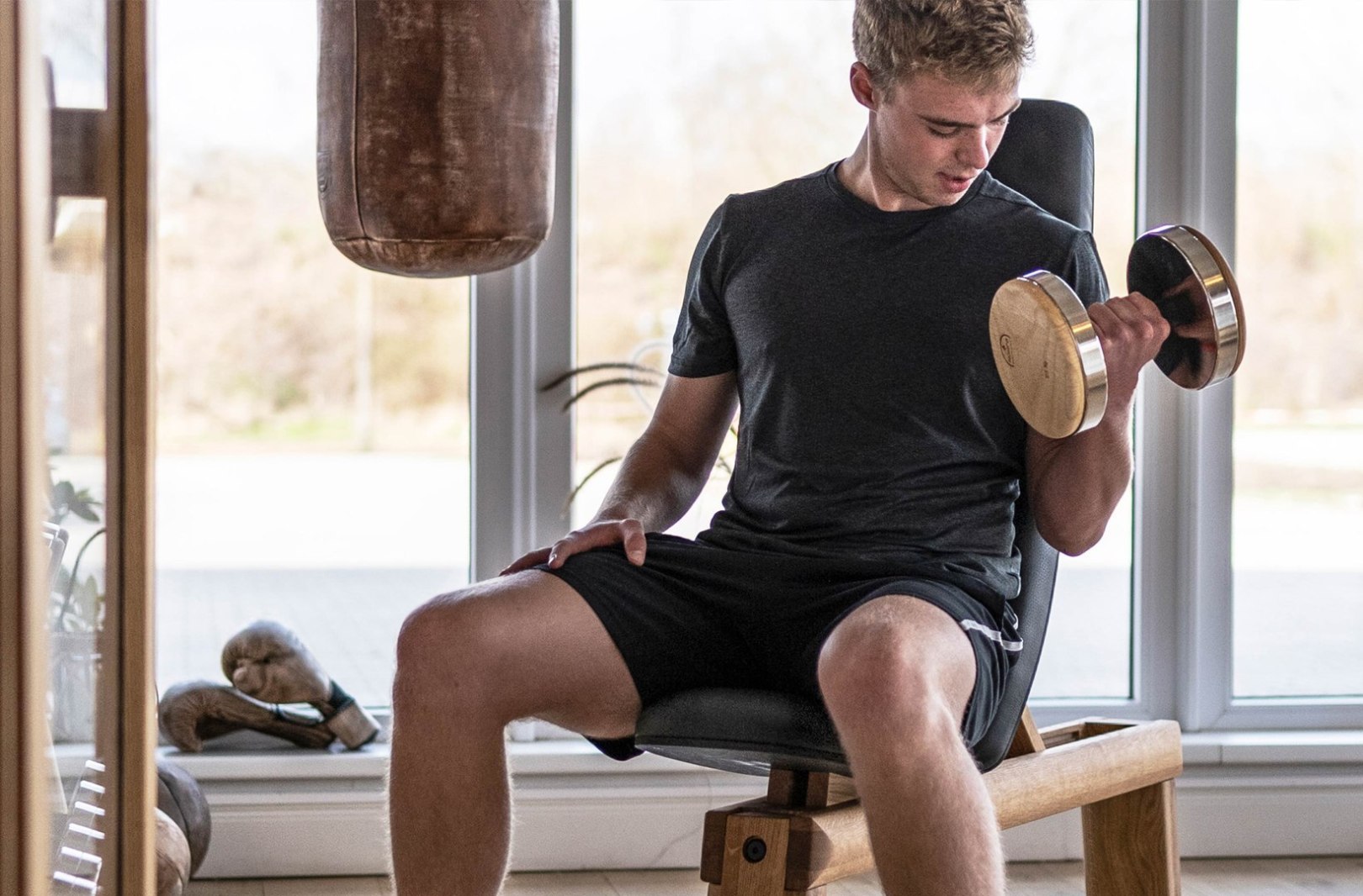Ławka treningowa do wyciskania NOHRD BenchPress spełnia wszystkie wymagania funkcjonalnej ławki treningowej w połączeniu z atrakcyjną estetyką. Rama wykonana została z litego drewna i zachwyca swoją stabilnością oraz szlifowanymi krawędziami. Ręcznie naciągnięta skóra (sztuczna bądź naturalna w zależności od wybranego modelu ławki) idealnie uzupełnia jej wygląd i nadaje charakteru produktu ekskluzywnego, który idealnie pasuje do każdego pomieszczenia.