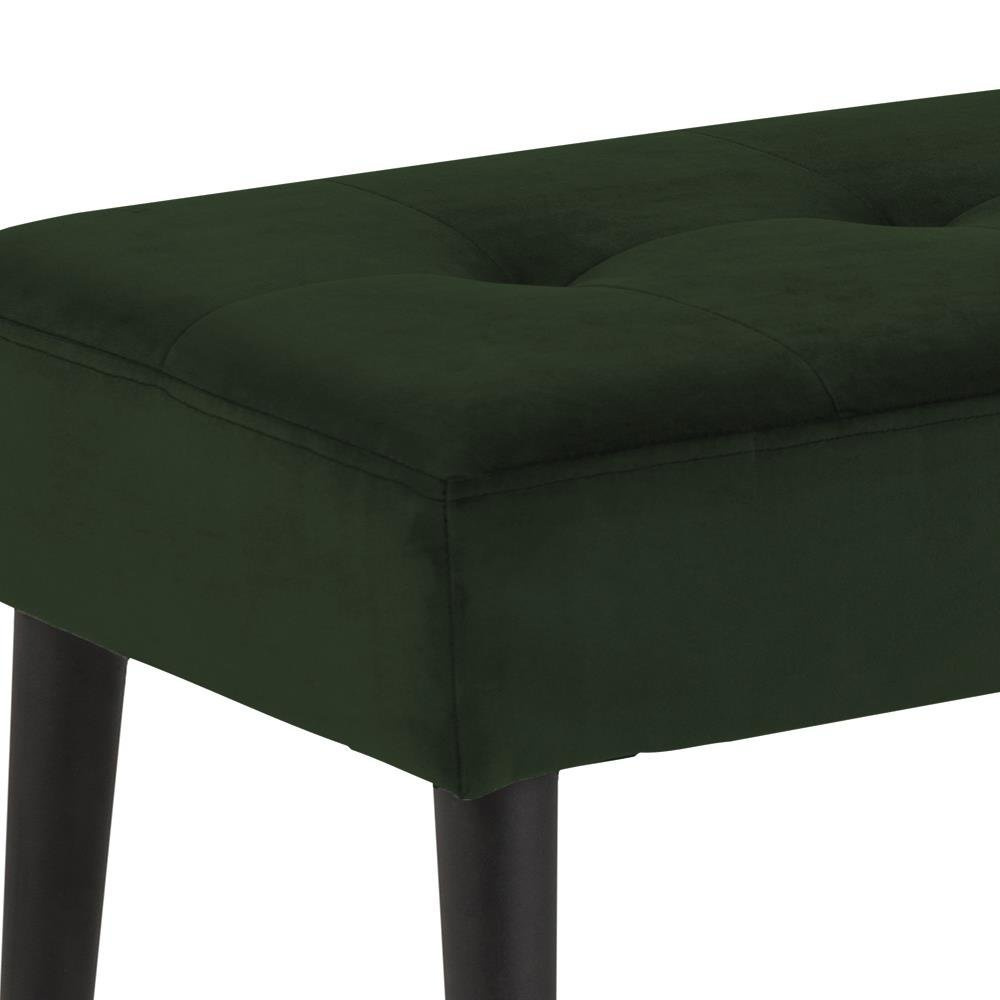 Ławka do przedpokoju Glory to wygodne siedzisko nie tylko pomagające w zakładaniu butów. Mebel wyposażony został w niezwykle przyjemne, miękkie siedzisko zrobione z pianki, obite przyjemną w dotyku welurową tkaniną w odcieniu zieleni. Ciekawe pikowania na siedzisku dodaje ławce charakteru stylu glamour. Tkanina użyta do obicia mebla to VIC forest green 68. Całość osadzona została na wysokich, zwężających się nogach z metalu malowanego proszkowo. Ławka może być siedziskiem w poczekalni, ławką dla dzieci lub ławką w hotelowym lobby.