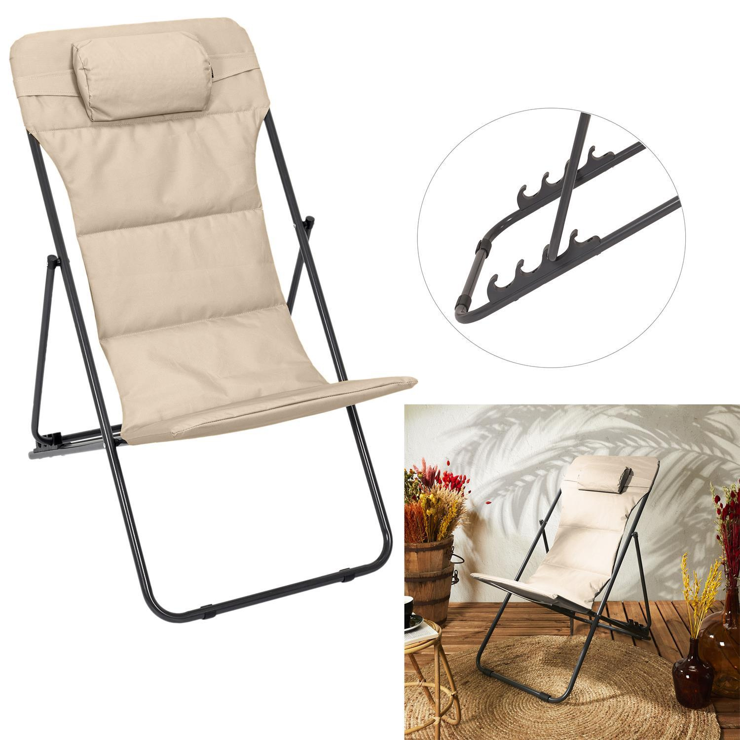 Składany leżak Grue sprawdzi się zarówno jako leżak na plażę, działkę lub ryby jak i jako krzesło w ogrodzie. Leżak Grue posiada 4 stopniową regulację rozłożenia. Mebel wykonany z metalu malowanego proszkowo oraz wytrzymałej tkaniny 100% poliester sprawdzi się w ogrodzie lub nad basenem. Leżak wyposażony został w poduszkę, która pozwala wypocząć w komfortowych warunkach. Leżak występuje w dwóch modnych kolorach, które ciekawie ze sobą wyglądają. Waga leżaka: 3,9 kg, Wymiary kartonu: 63,5x8x114cm, Max 1 szt w kartonie.