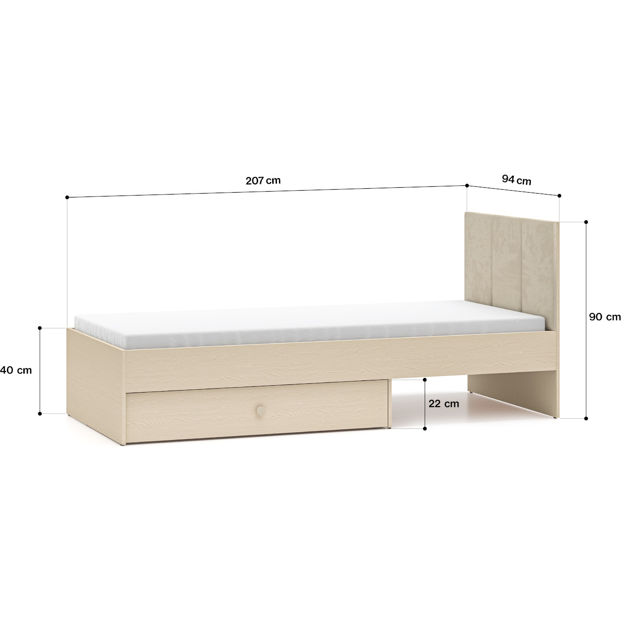 Powierzchnia spania: 90x200cm