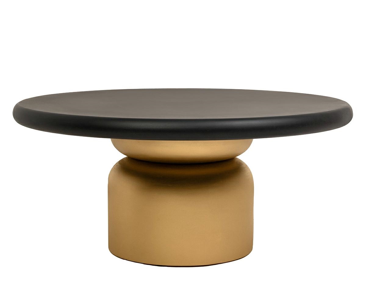 Podstawa stolika w złotym odcieniu emanuje elegancją, luksusem i subtelną ekstrawagancją, wprowadzając do wnętrza ponadczasowy blask, ciemny blat z kolei dodaje przestrzeni elegancji, spokoju i głębi, razem tworzą idealne połączenie, które harmonijnie łączy luksus z wyważoną formą.