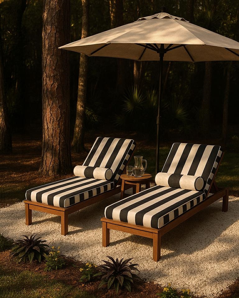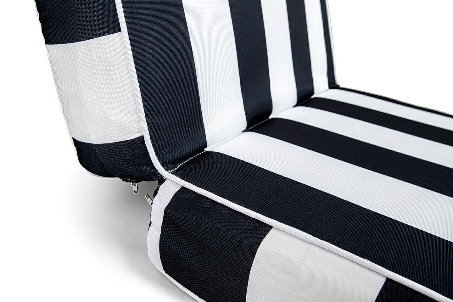 Wykonany z wytrzymałej tkaniny outdoorowej w pięknej biało-czarnej tkaninie w paski, jest odporny na warunki atmosferyczne.