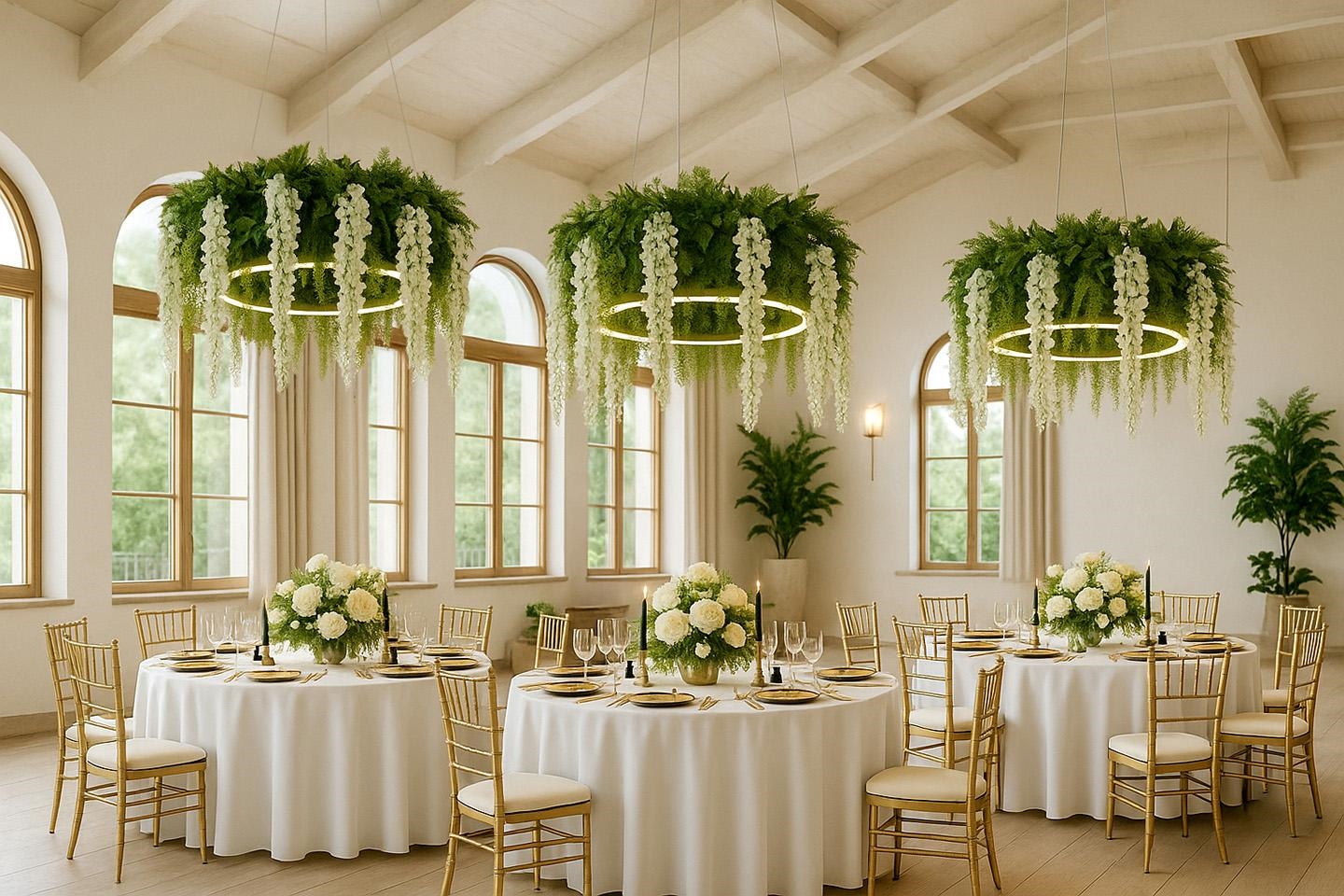 Wyjątkowy design nawiązuje do bujnej roślinności, a sztuczne kwiaty rozmieszczone są na eleganckim, czarnym ringu.