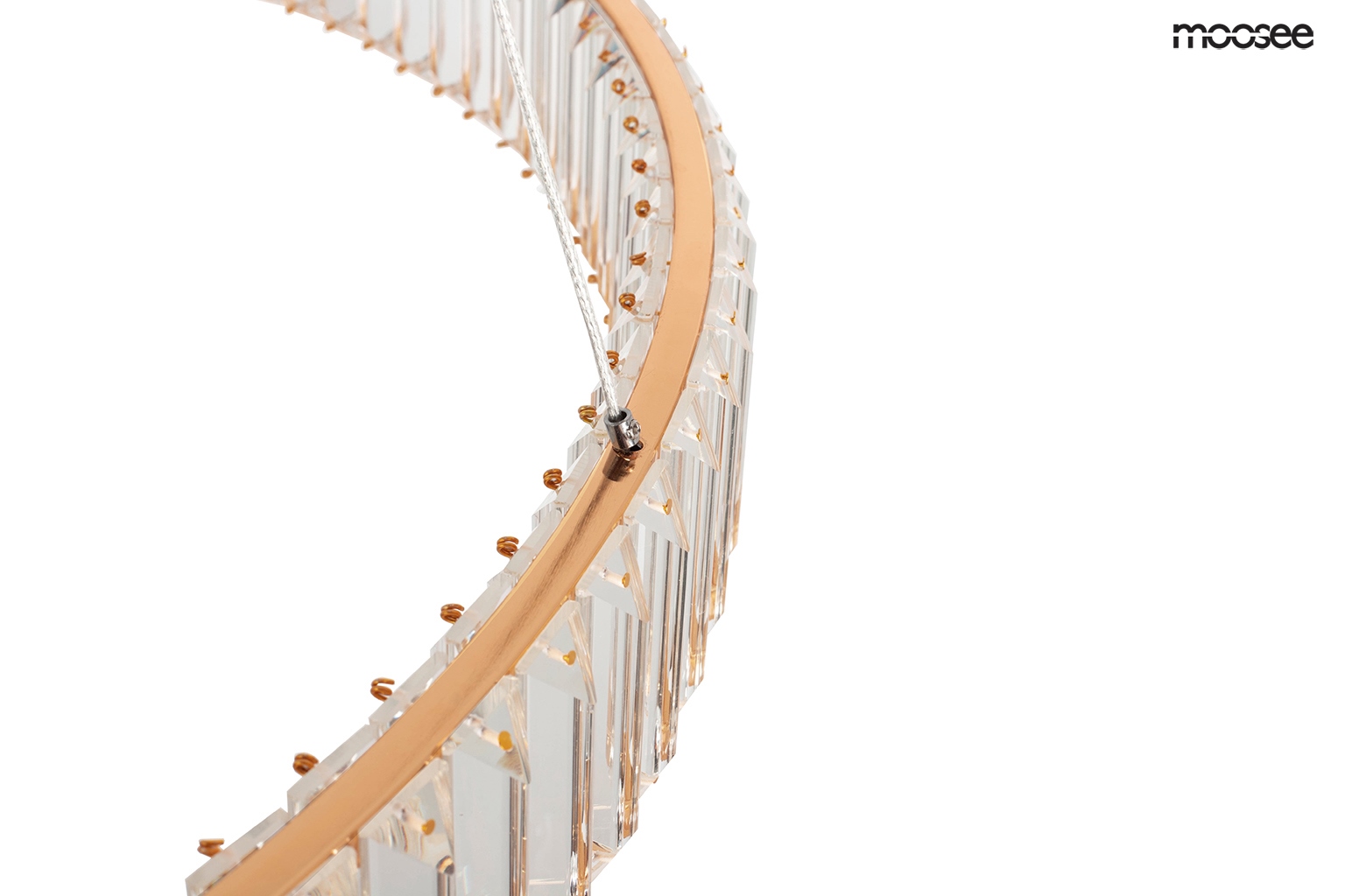 Kryształowe szkło zamocowane po obu stronach obręczy w niezwykły sposób rozprasza strumień światła.