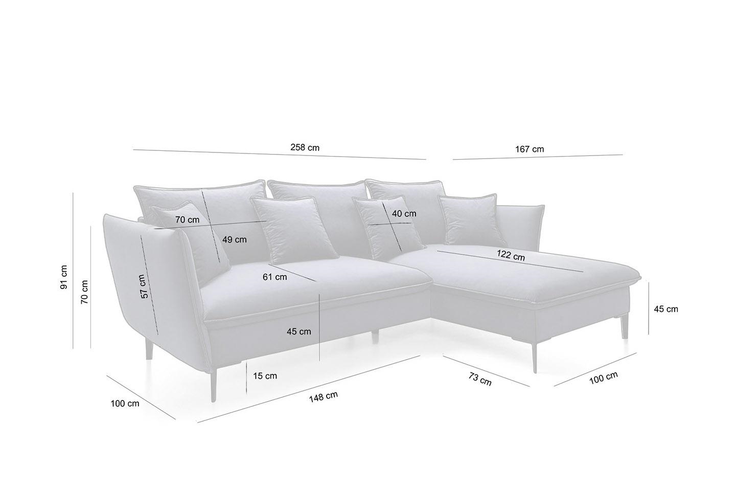 Wymiary: wys. 91 cm / szer. 258 cm / gł. 167 cm