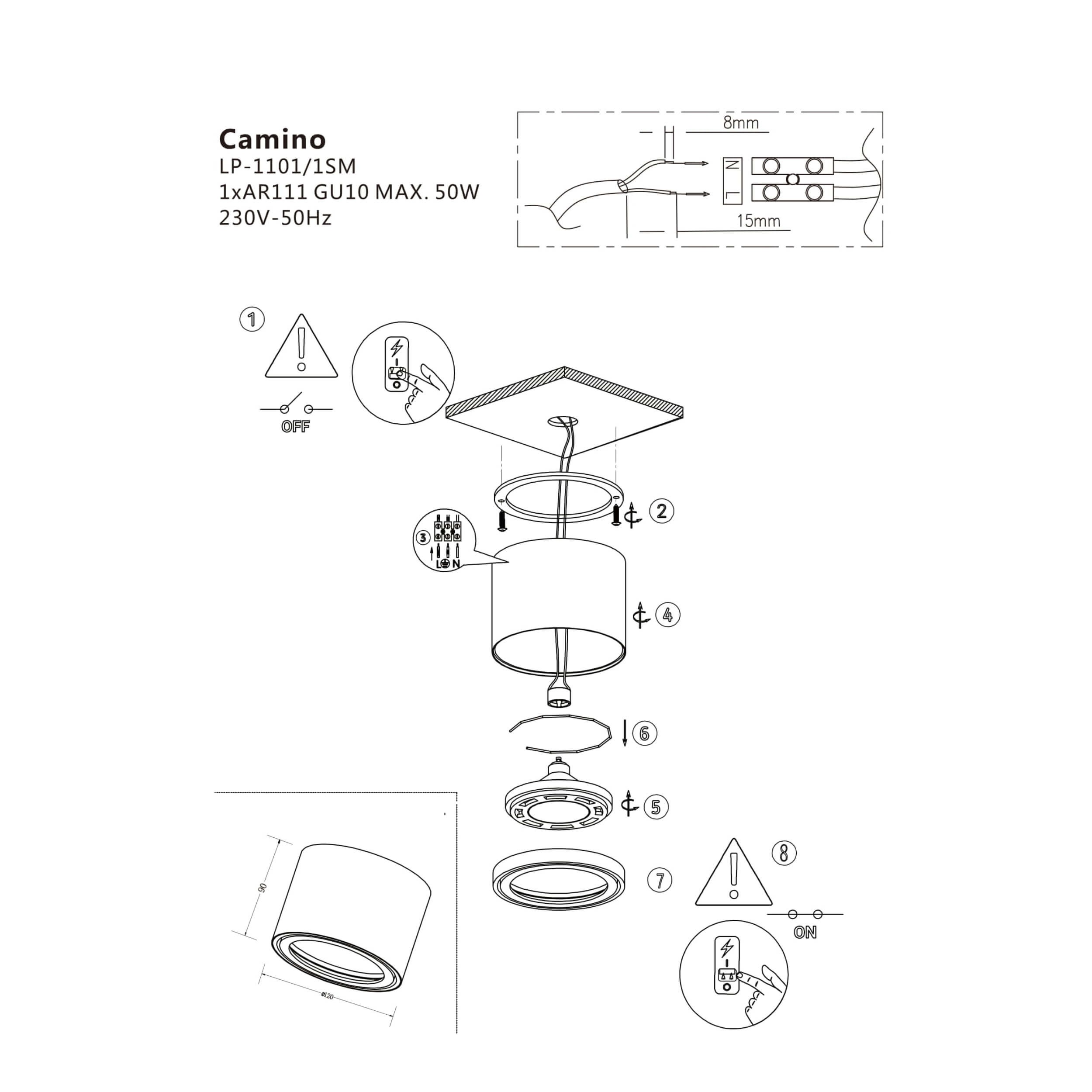 Rodzaj lampy: Oprawa natynkowa w czarnym kolorze z kolekcji Camino. Wymiary: Oprawa posiada wysokość 9 cm oraz średnicę 12 cm. Materiał i kolorystyka: Lampa została wykonana z metalu w czarnym kolorze. Źródło światła: Oprawa Camino posiada wejście na jedną żarówkę o gwincie ES111.