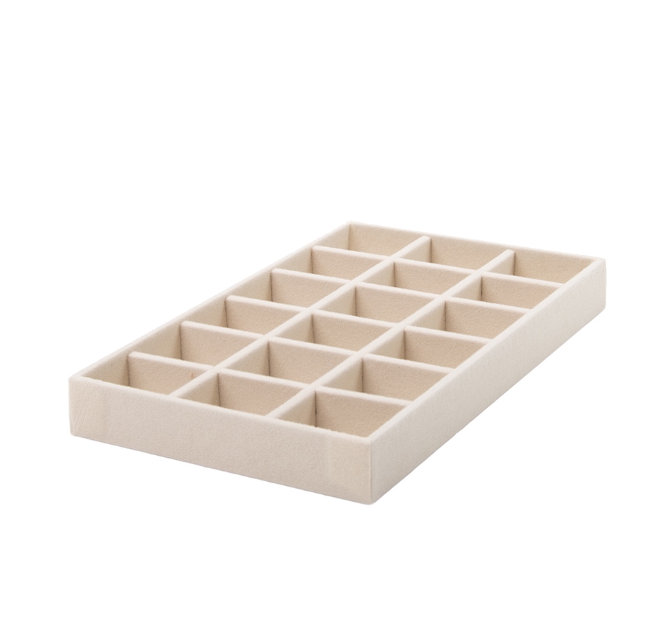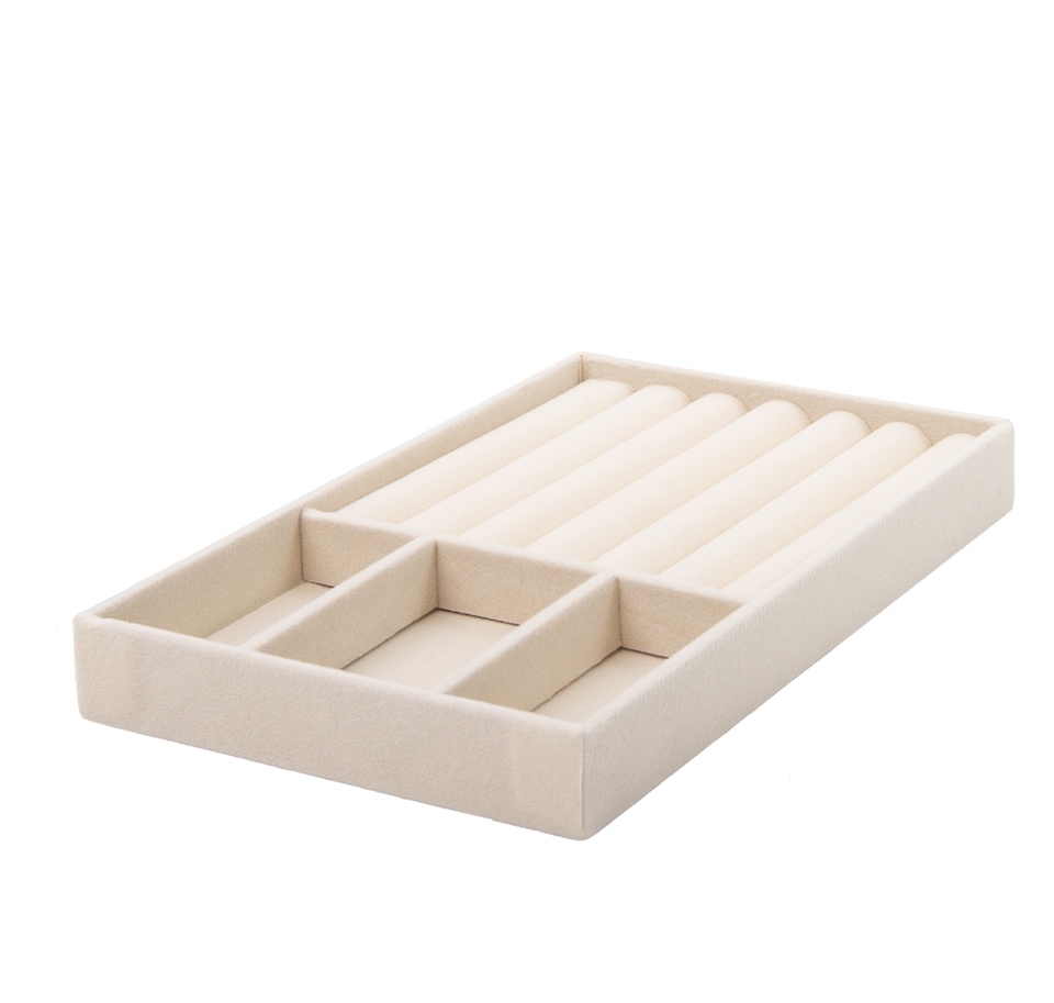 Wykonany z miękkiego, przyjemnego w dotyku weluru, chroni biżuterię przed zarysowaniami i nadaje wnętrzu szuflady luksusowy charakter.