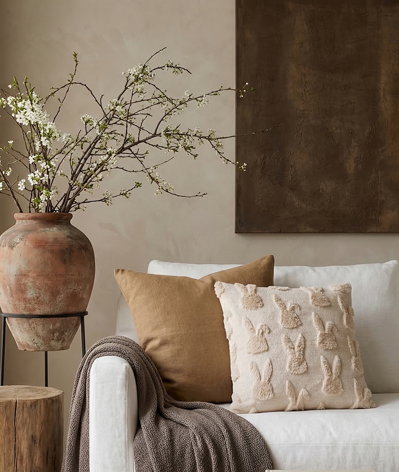 Szczególnie dobrze pasuje do wnętrz w stylu naturalnym, skandynawskim lub wielkanocnych aranżacji.