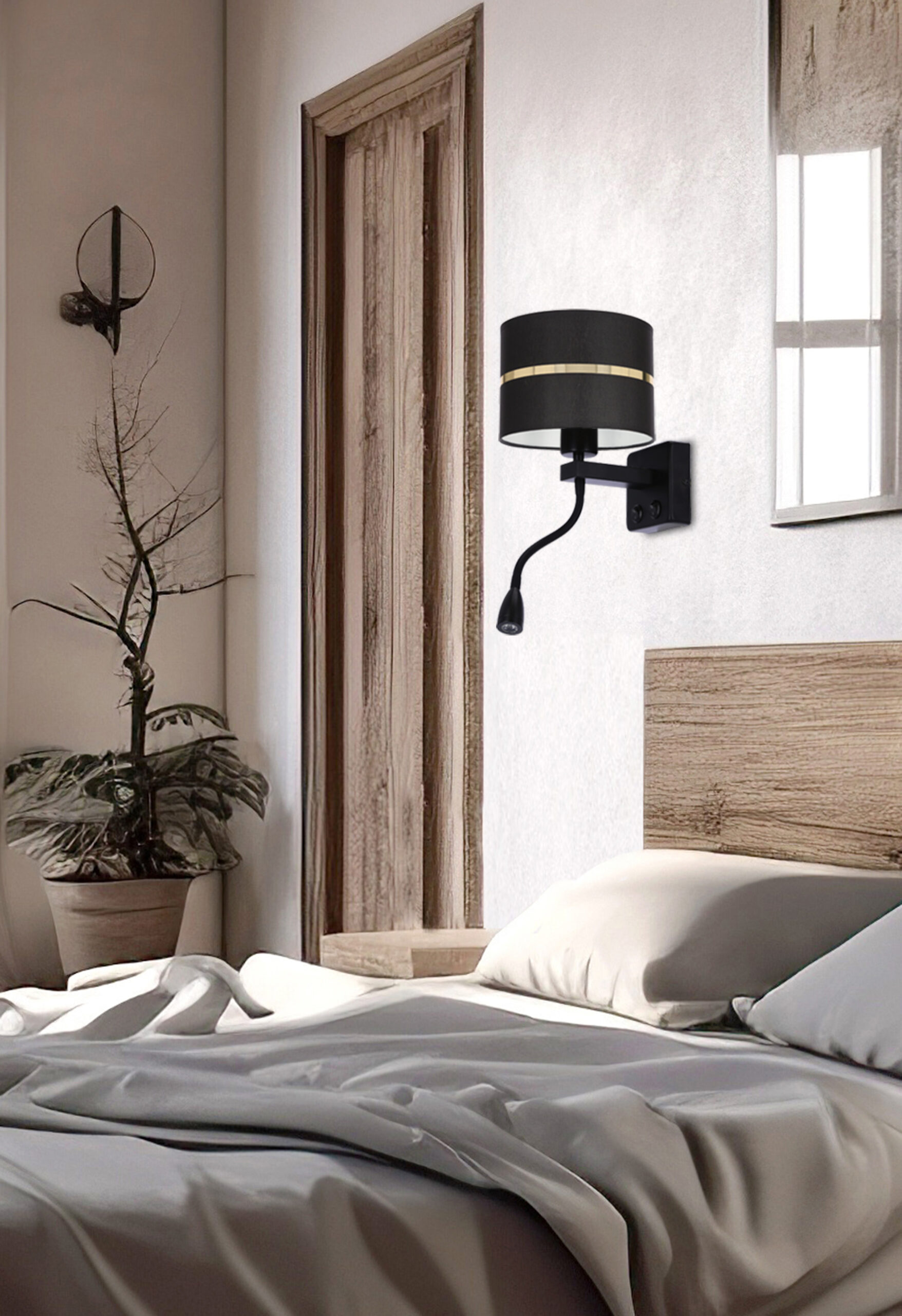 Materiał: podstawa stalowa, abażur tkanina/PCV