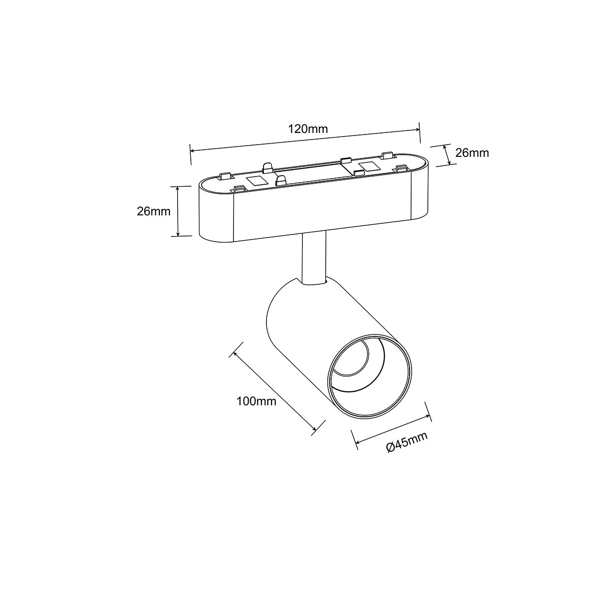 Rodzaj lampy: Reflektor do oświetlenia szynowego z kolekcji Magnetic Slim, model Veltra. Wymiary: Długość klosza wynosi 10 cm, średnica klosza wynosi 4,5 cm. Szerokość podsufitki to 12 cm, natomiast jej wysokość i głębokość to 2,6 cm. Materiał i kolorystyka: Lampę jest wykonana z metalu w czarnym kolorze. Źródło światła: Zintegrowane źródło światła LED o ciepłej barwie 3000K.