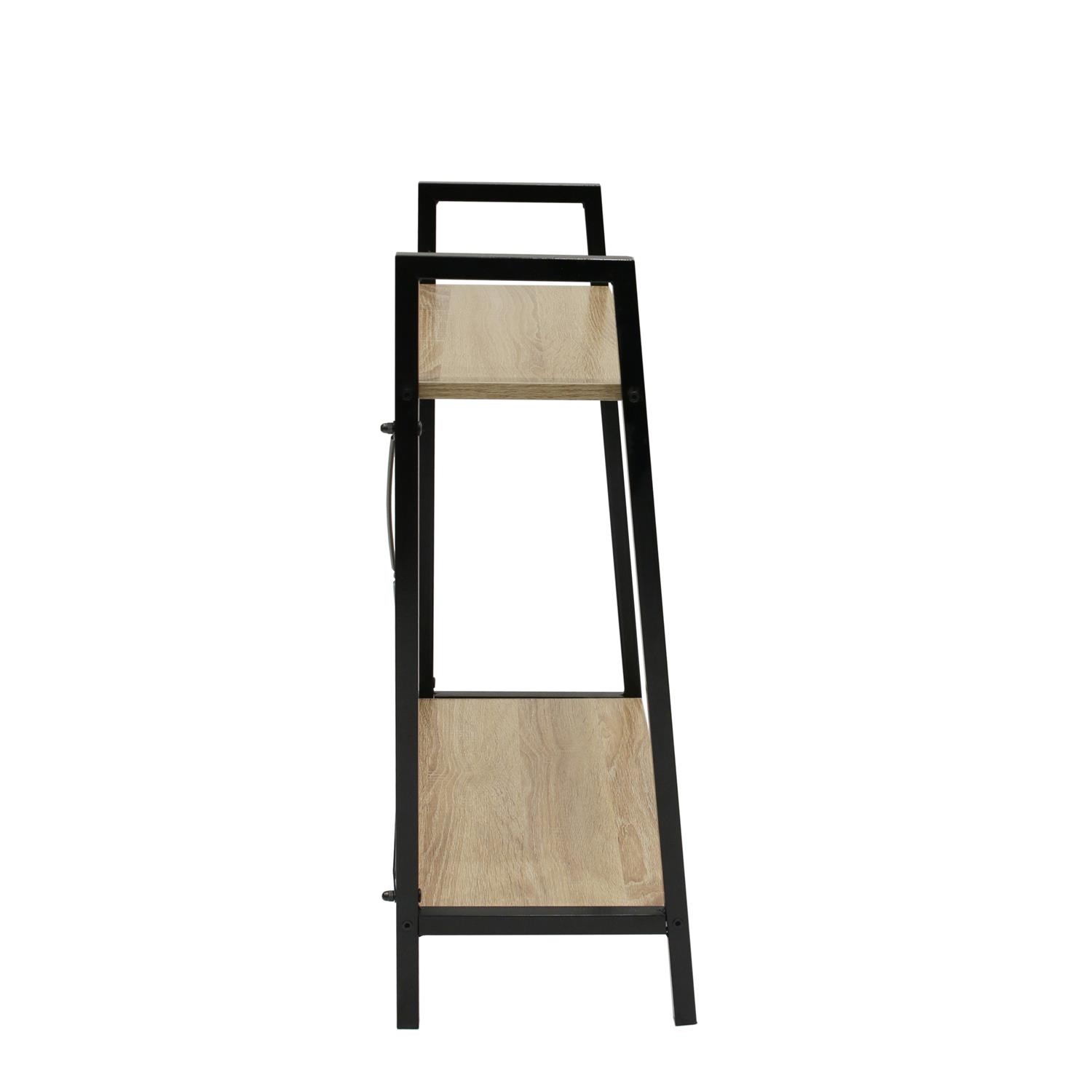 Regał Cilyan to wyjątkowy mebel do nowoczesnych i loftowych pomieszczeń. Regał, dzięki połączeniu czarnego koloru oraz koloru jasnego dębu, prezentuje się wyjątkowo lekko i zgrabnie. Proszkowo pomalowana na czarno rama mebla charakteryzuje się dużą trwałością, odpornością na korozję, wysoką temperaturę oraz uszkodzenia mechaniczne, dzięki czemu znacznie podnosi walory użytkowe i estetyczne mebla. Z kolei dwie półki to wysokogatunkowa płyta MDF pokryta laminatem imitującym drewno, dzięki czemu powierzchnie półek są gładkie i wytrzymałe. Prosta konstrukcja wsparta została stalowymi prętami, które prócz funkcji wspornika są również ciekawym elementem dekoracyjnym. Cilyan może pełnić funkcje szafki nocnej, półki na buty lub regału w biurze. Max. obciążenie na jedną półkę: 10 kg. Odległość między półkami: 46cm, Wymiary półek Cilyan S, Szerokość 55cm, głębokość: górna: 22cm, dolna: 26cm