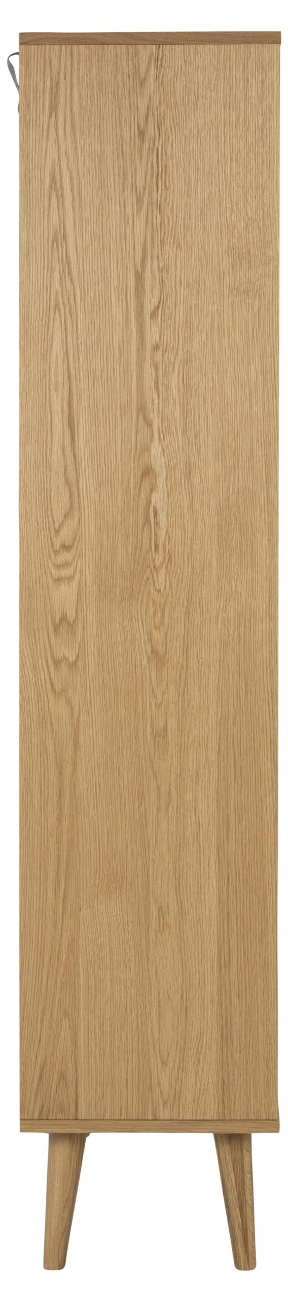 Regał Nagano w neutralnej, skandynawskiej stylistyce w wybarwieniu w kolorze dębu. Możliwość dopasowania umiejscowienia półek. Regał idealnie nadaje się do salonu lub gabinetu. Wykonany z połączenia lakieorwanej płyty MDF i drewna dębowego. Wymiary: 80x37x178 cm Waga: 65kg Ilość kartonów: 2