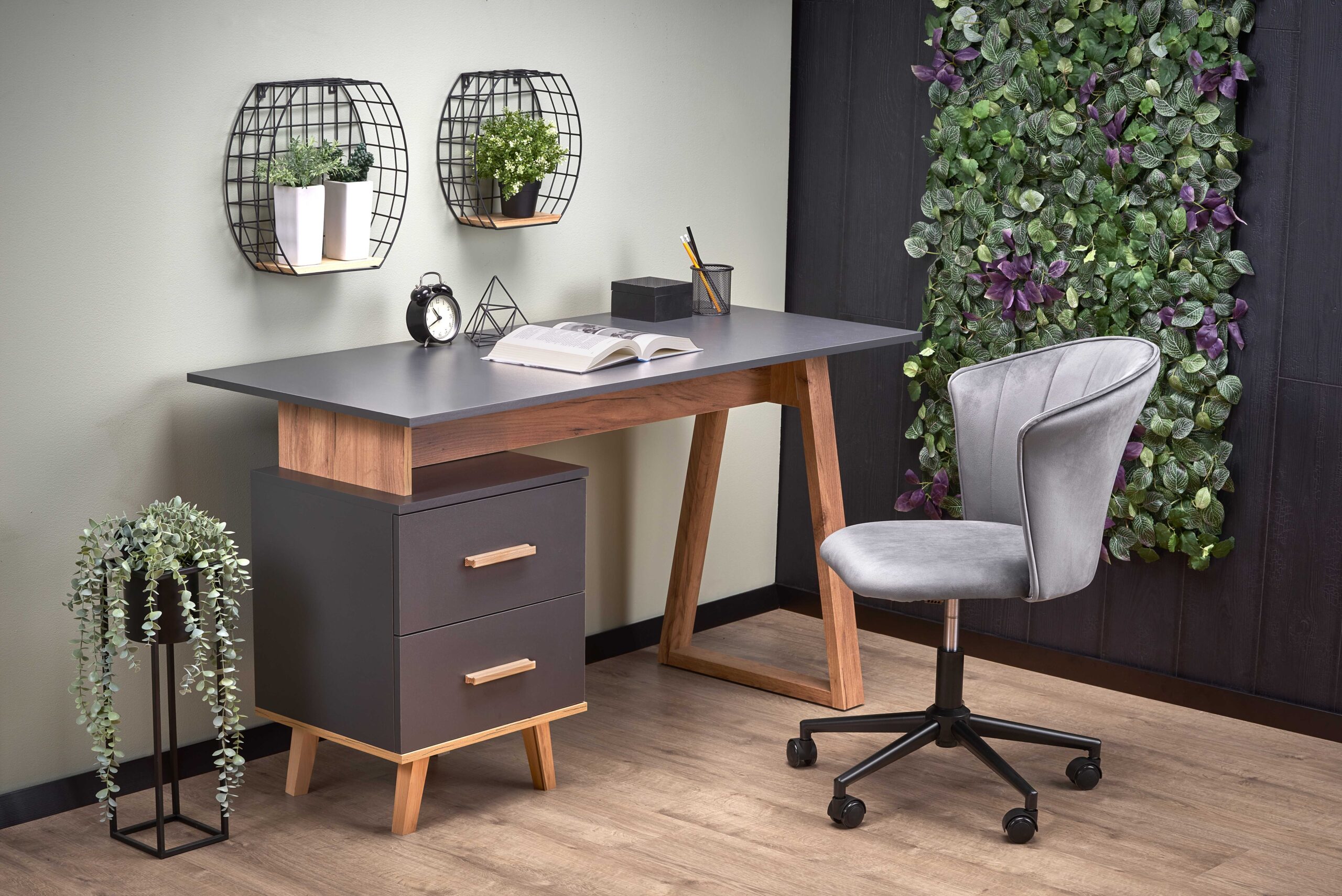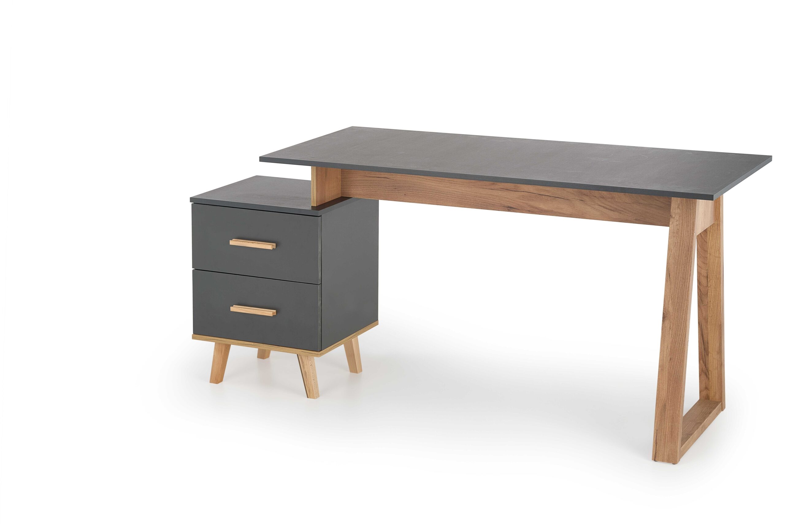 wymiary: 134-165-60/78 cm, biurko z moźliwością regulacji szerokości, materiał: płyta meblowa okleinowana / MDF okleinowany / drewno lite, kolor: antracyt mat – dąb wotan