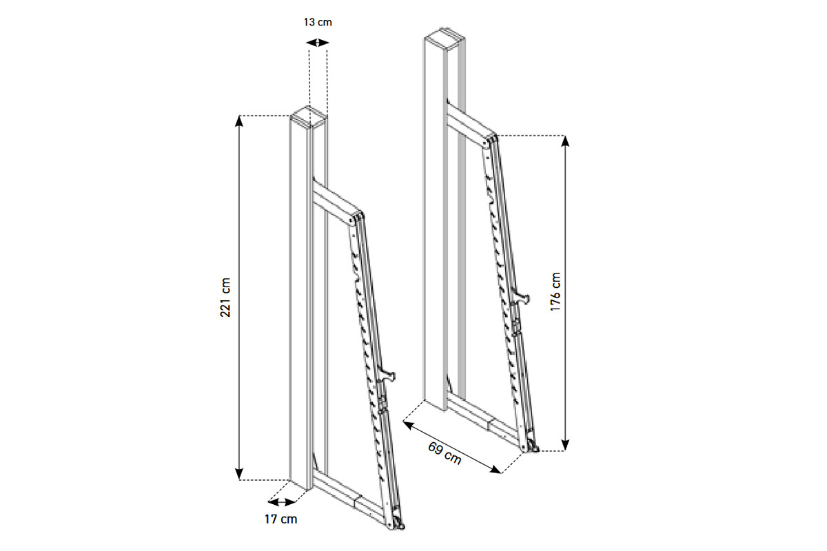- Wymiary rozłożonego stojaka: 69x13x221 cm