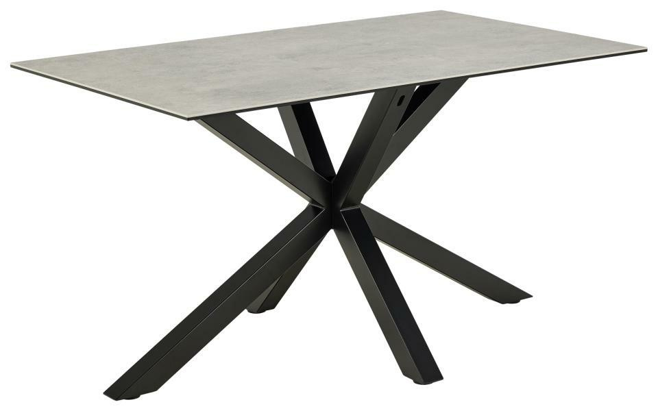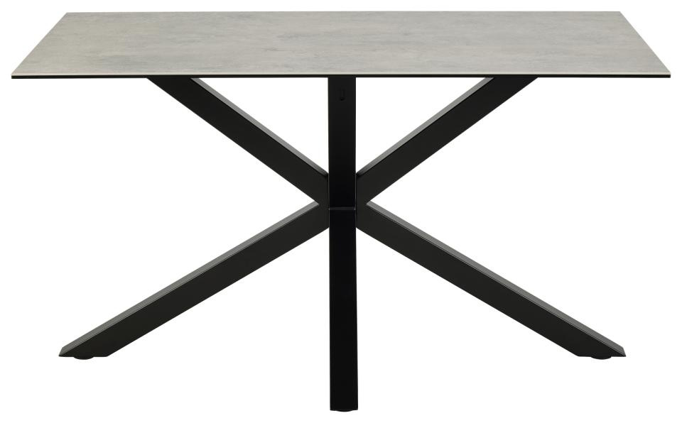 Prostokątny stół jadalny Heaven, blat z szarej ceramiki Anista, podstawa 4-ramienna, stal malowana proszkowo na czarno, 135 x 80 x 75,5 cm