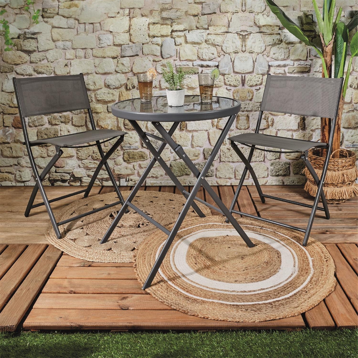 Okrągły, składany stół Elba to idealny mebel na popołudniową kawę na tarasie. stolik średicy 60cm sprawdzi się na niedużym balkonie lub patio. Dzięki łatwemu złożeniu, stolik możemy łatwo schować, a sam mebel nie zajmie dużo miejsca podczas przechowywania. Stolik wykonany został z metalu malowanego proszkowo oraz tworzywa sztucznego. Stolik mozna używać na zewn ątrz pod warunkiem ukrycia go przed mocnymi promieniami słonecznymi, gdyż nie jest odporny na promienie UV. Stolik również nie nadaje się do użytkowania podczas deszczu. W razie zmoczenia mebla należy niezwłocznie go wytrzeć do sucha. Wymiary kartonu; 62,5×11,5×98 cm Mx 1szt w kartonie Waga 8kg