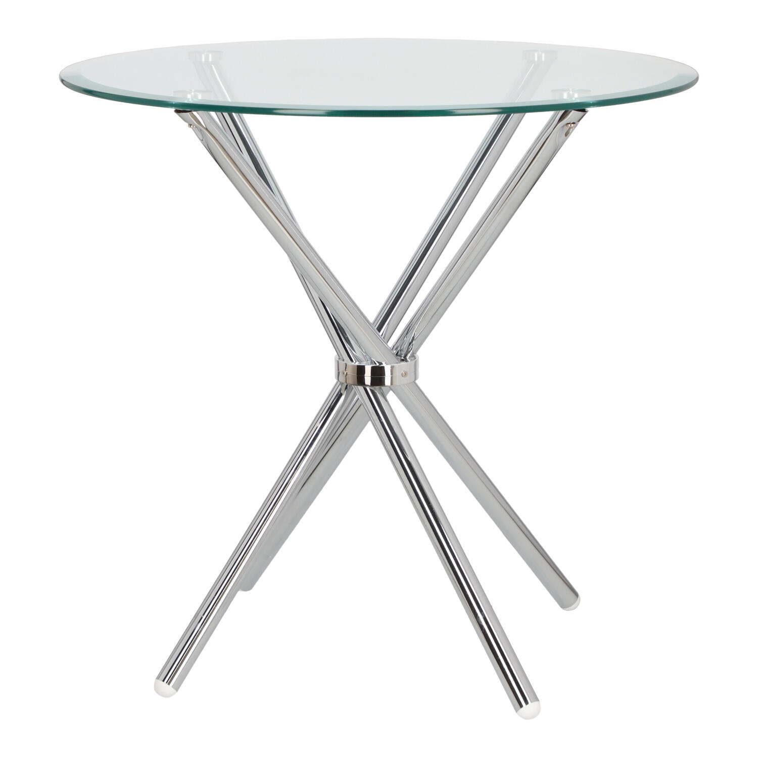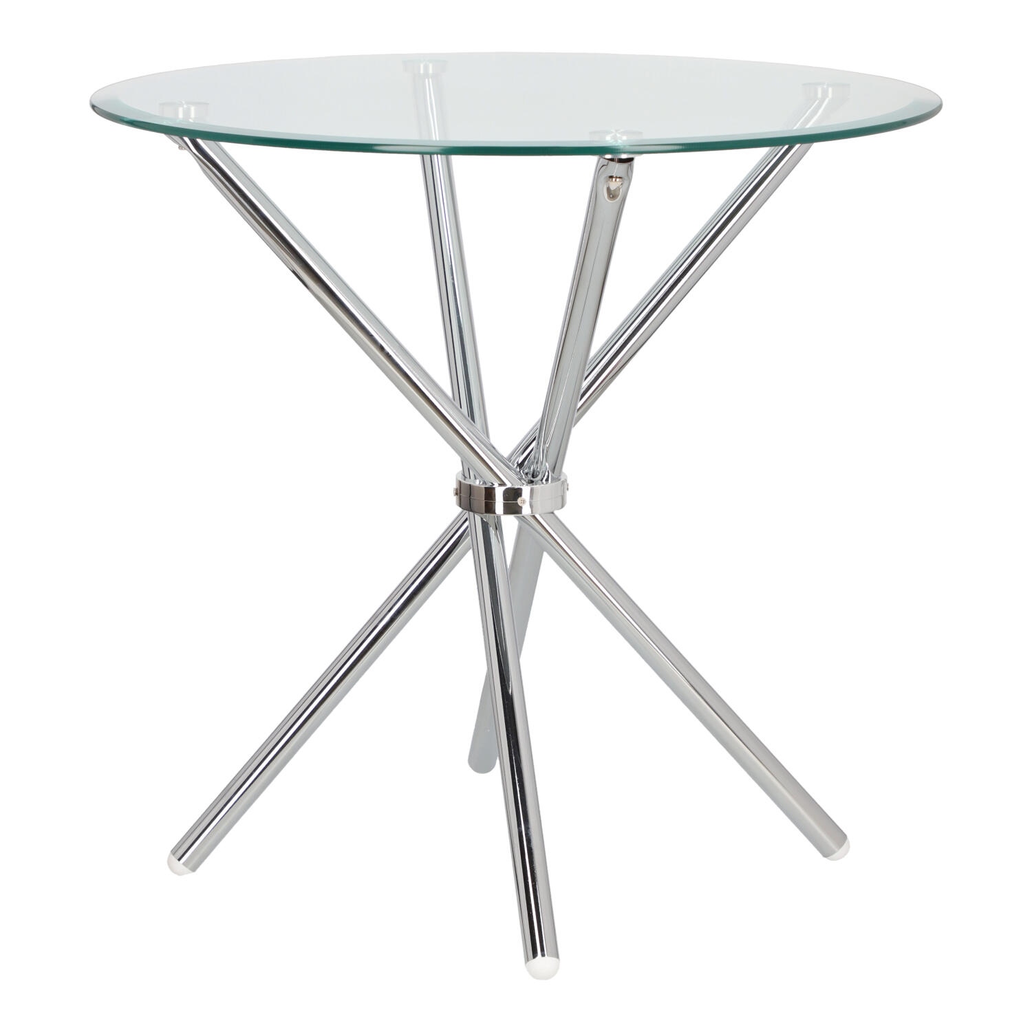 Stół Ufo to połączenie minimalistycznego szklanego, okrągłego blatu oraz chromowanej podstawy o oryginalnej budowie. Szklany blat o średnicy 90 cm wykonany został z hartowanego szkła. Grubość blatu 1 cm. Nogi stołu wykonane z metalu chromowanego. Nowoczesny i elegancki design stołu uzupełni jadalnie lub kuchnię w nowoczesnym stylu. Kompaktowy rozmiar 90 centymetrów zapewnia wszechstronne możliwości spożywania posiłków. Łatwy w czyszczeniu stół sprawdzi się podczas rodzinnego biesiadowania jak i podczas śniadania z małymi dziećmi. Stół wystarczy przetrzeć ściereczką z detergentem, aby uzyskać od nowa nieskazitelną czystość i blask. Średnica nogi stołu 3 cm Stół wymaga montażu. Maksymalne obciążenie stołu to 50 kg. Waga stołu: 13 kg