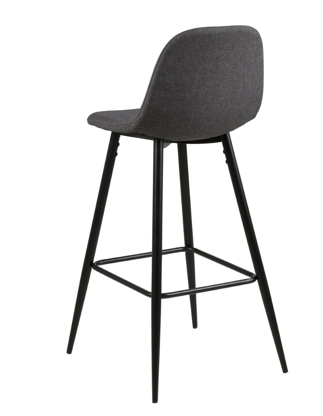 Wilma to zgrabne, bardzo nowoczesny stołek barowy. Charakteryzuje go ciekawa tkanina Sawana Grey 5, którą został obity. Siedzisko oraz oparcie są lekko wyprofilowane aby zapewnić jak najwygodniejszą pozycję do siedzenia. Podstawą stołka są lakierowane proszkowo metalowe czarne nogi. Waga krzesła to tylko 6 kg Maksymalne obciążenie: 120kg . Wymiary kartonów. Pierwszy: 60cm x 36cm x 47cm. Drugi: 78cm x 14cm x 7cm Wyskokość siedziska: 65 cm Szerokość siedziska: 41 cm Głębokość siedziska: 34 cm