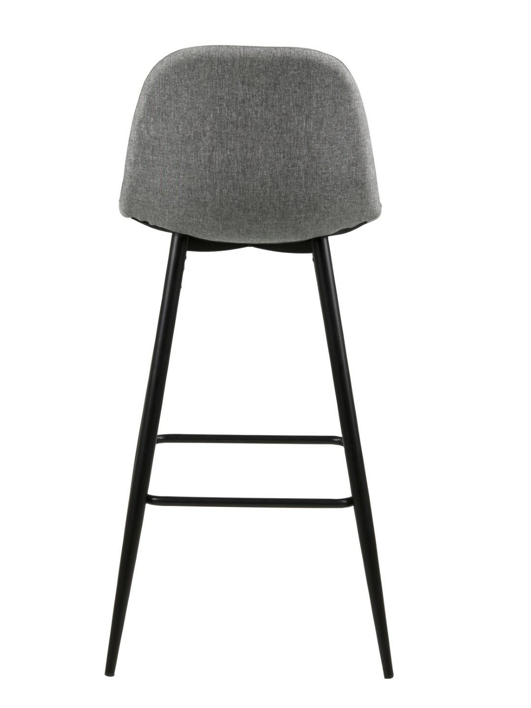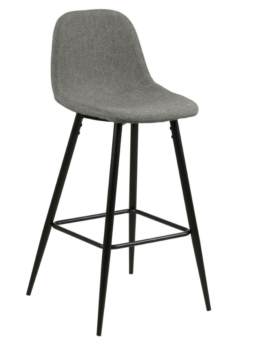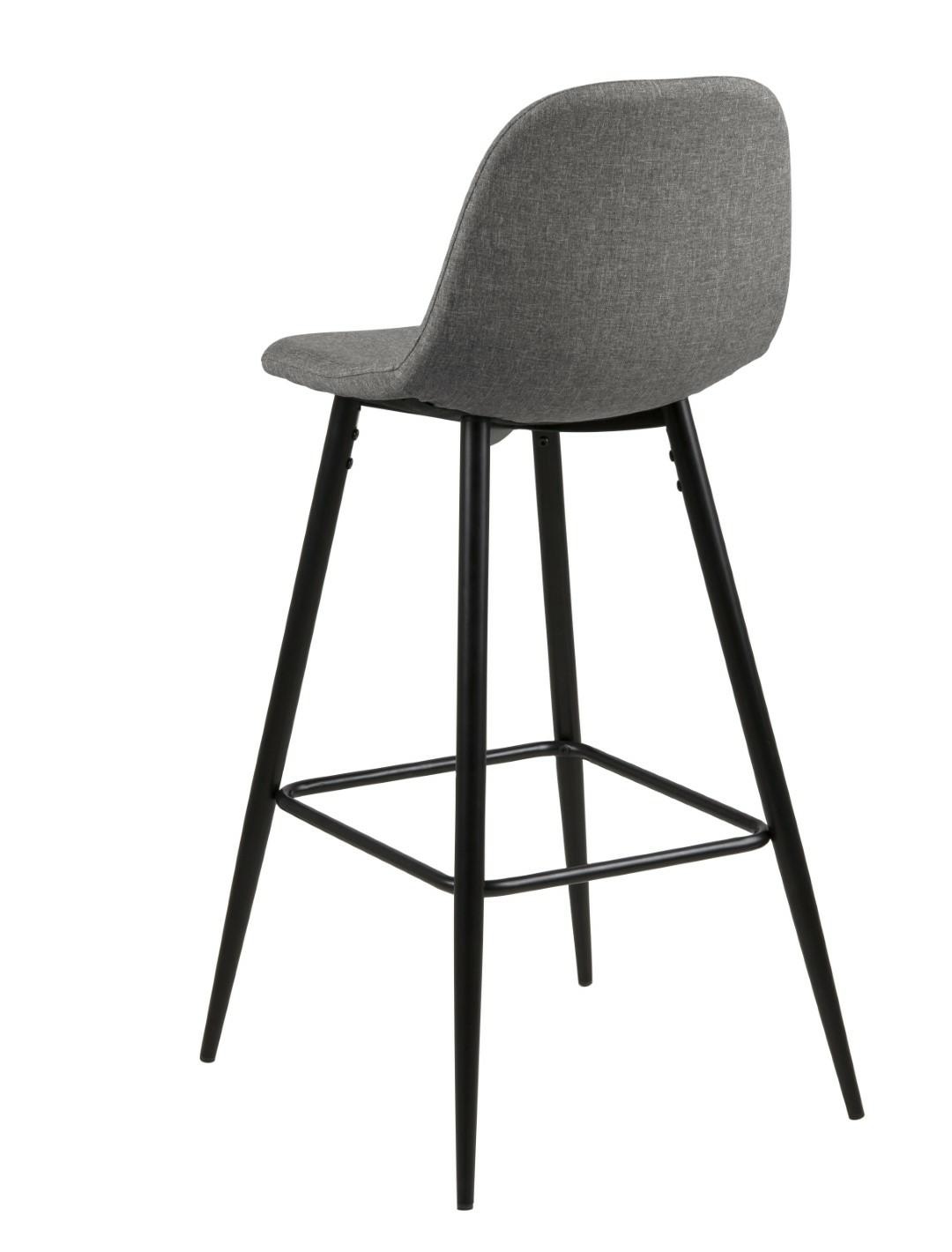 Wilma to zgrabne, bardzo nowoczesny stołek barowy. Charakteryzuje go ciekawa tkanina Sawana light grey 21, którą został obity. Siedzisko oraz oparcie są lekko wyprofilowane aby zapewnić jak najwygodniejszą pozycję do siedzenia. Podstawą stołka są lakierowane proszkowo metalowe czarne nogi. Waga krzesła to tylko 6 kg Maksymalne obciążenie: 120kg . Wymiary kartonów. Pierwszy: 60cm x 36cm x 47cm. Drugi: 78cm x 14cm x 7cm Wyskokość siedziska: 65 cm Szerokość siedziska: 41 cm Głębokość siedziska: 34 cm