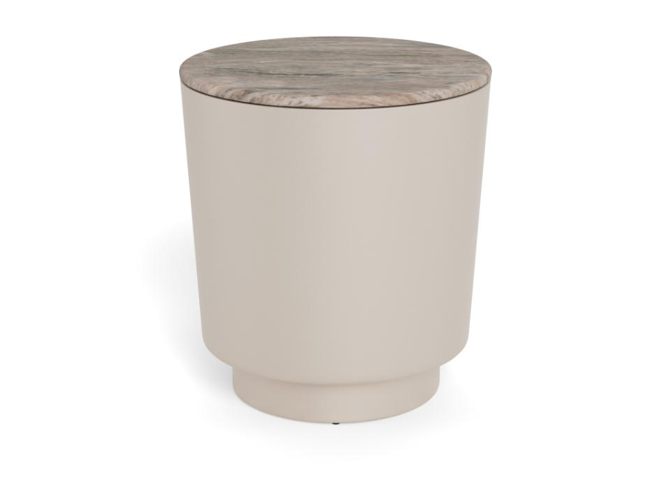 Okrągły stolik kawowy Cangas, blat z polerowanego marmuru Toronto w kolorze szarym, podstawa z szarej stali malowanej proszkowo, ?45 x 51,5 cm
