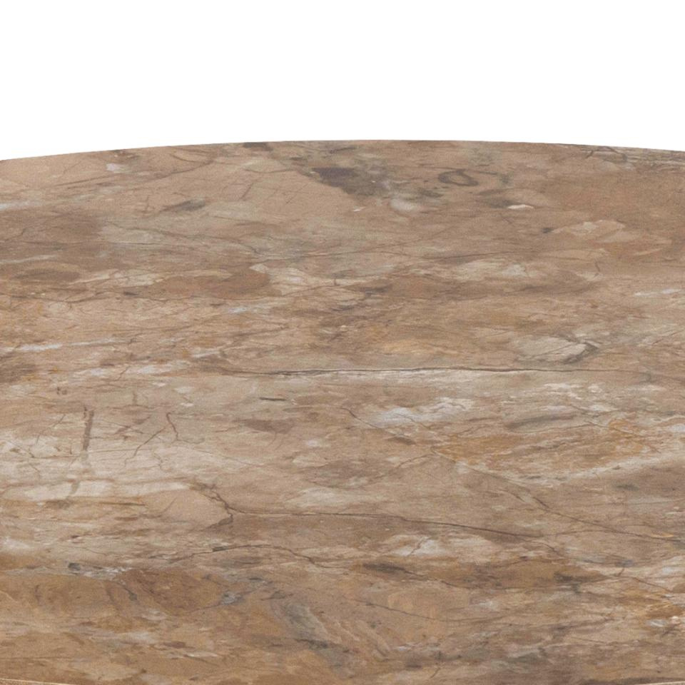 Okrągły stolik kawowy Malta, blat brązowy Aberta, polerowana ceramika, podstawa w kształcie trąbki, szara, szorstka stal malowana proszkowo stal, ?60×45 cm