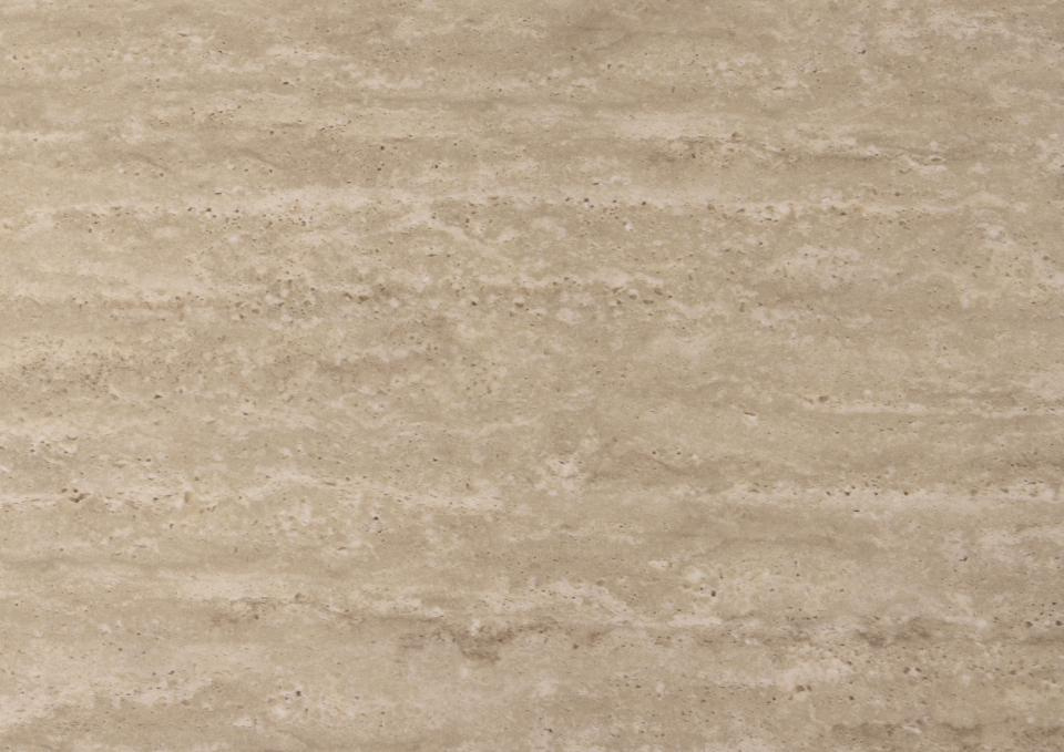 Okrągły stolik kawowy Santorini, blat z beżowego trawertynu ceramicznego, podstawa z filarem z szarej, szorstkiej stali malowanej proszkowo, ?45 x 47,5 cm