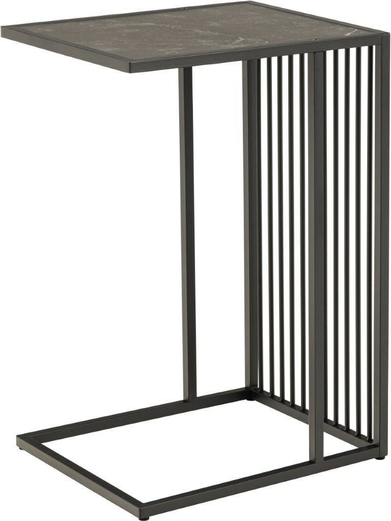 Stolik pomocniczy Strington to nowoczesny, industrialny model wykonany z użyciem malowanego proszkowo metalu oraz płyty MDF w okleinie imitującej marmur. Stolik wyróżnia jego nietypowa podstawa – asymetryczna i złożona z cienkich, pionowych listewek wykonanych z metalu. Stolik posiada także blat w kształcie kwadratu. Stolik Strington charakteryzuje niezwykła stabilność uzyskana dzięki odpowiedniemu wyważeniu podstawy. Jako stolik pomocniczy Strington sprawdzi się nie tylko w salonie obok sofy, ale także w biurowej poczekalni czy gabinecie. Ilość kartonów: 1 Wymiary kartonów: 68×37,5×6,5cm Waga kartonów: 4,5kg